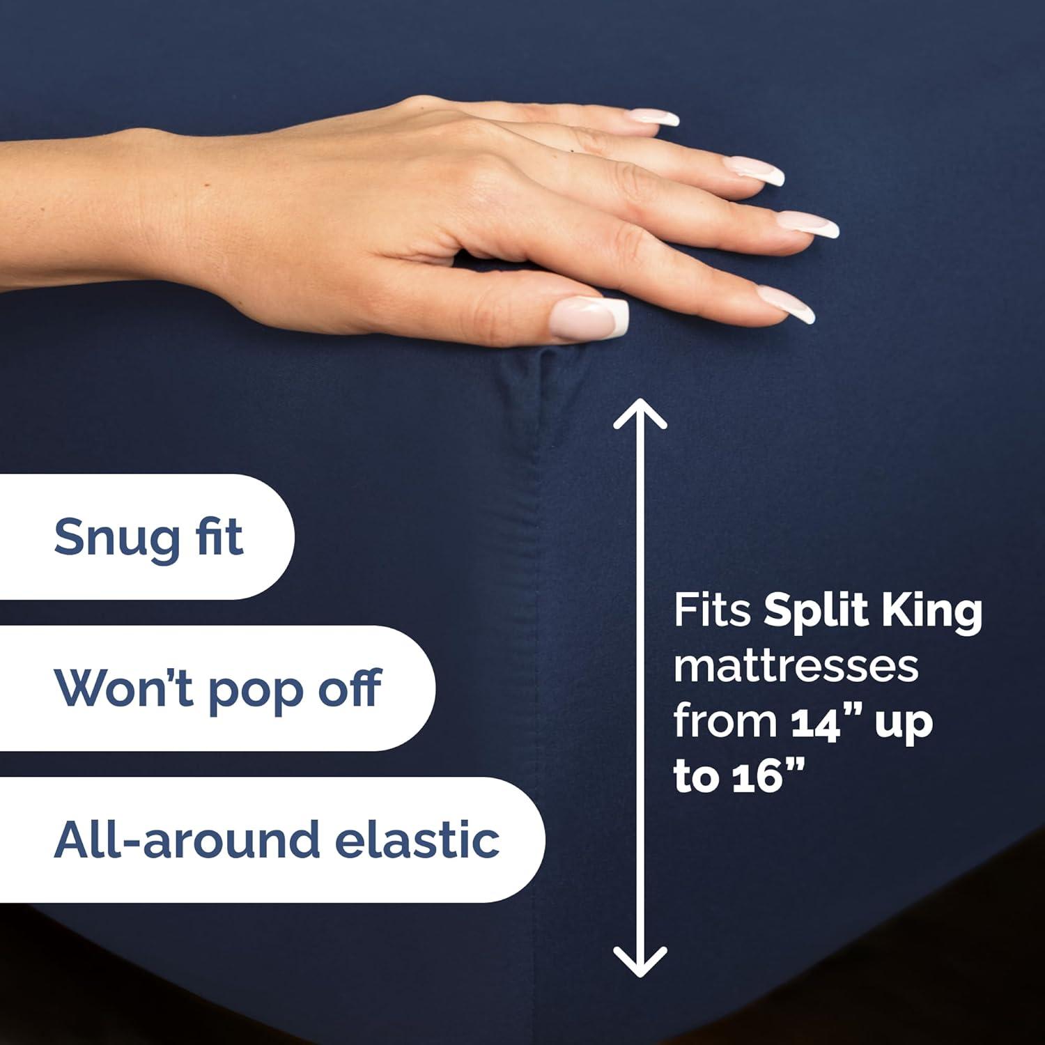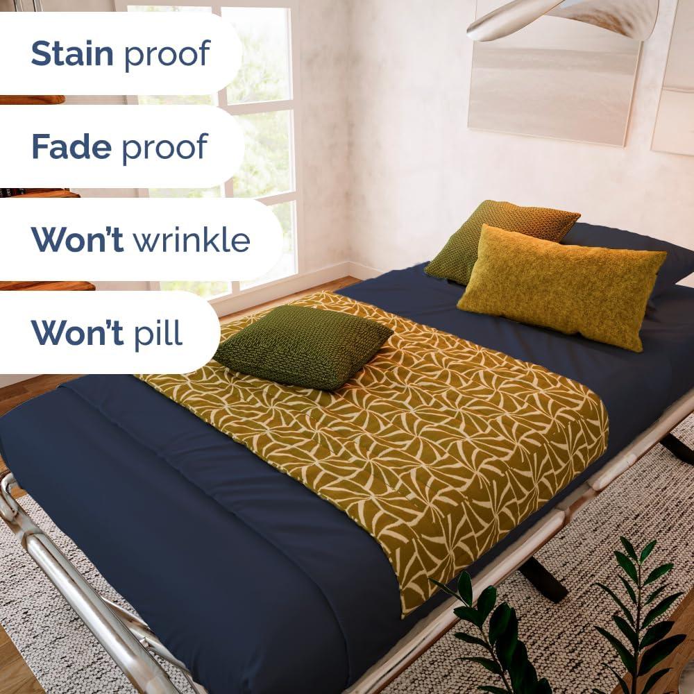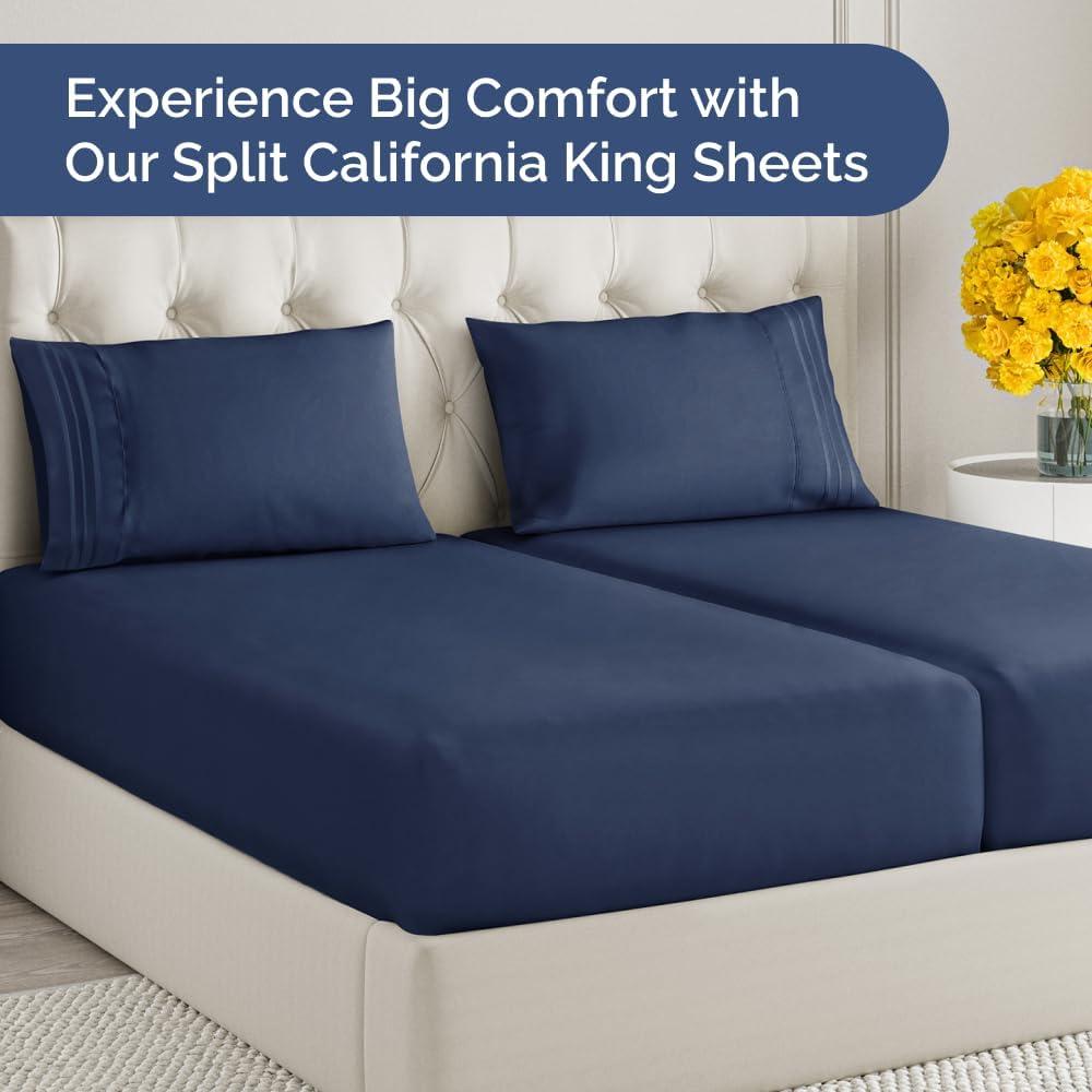 RV King Size Sheet Set 72 x 80 - 4 Piece RV King Bed Sheets - Soft, Breathable and Cooling - Designed for Bunks, Trailers & Campers - Fits 8” to 10" Mattress - Luxury Bedding & Wrinkle Free - White(Navy Blue)