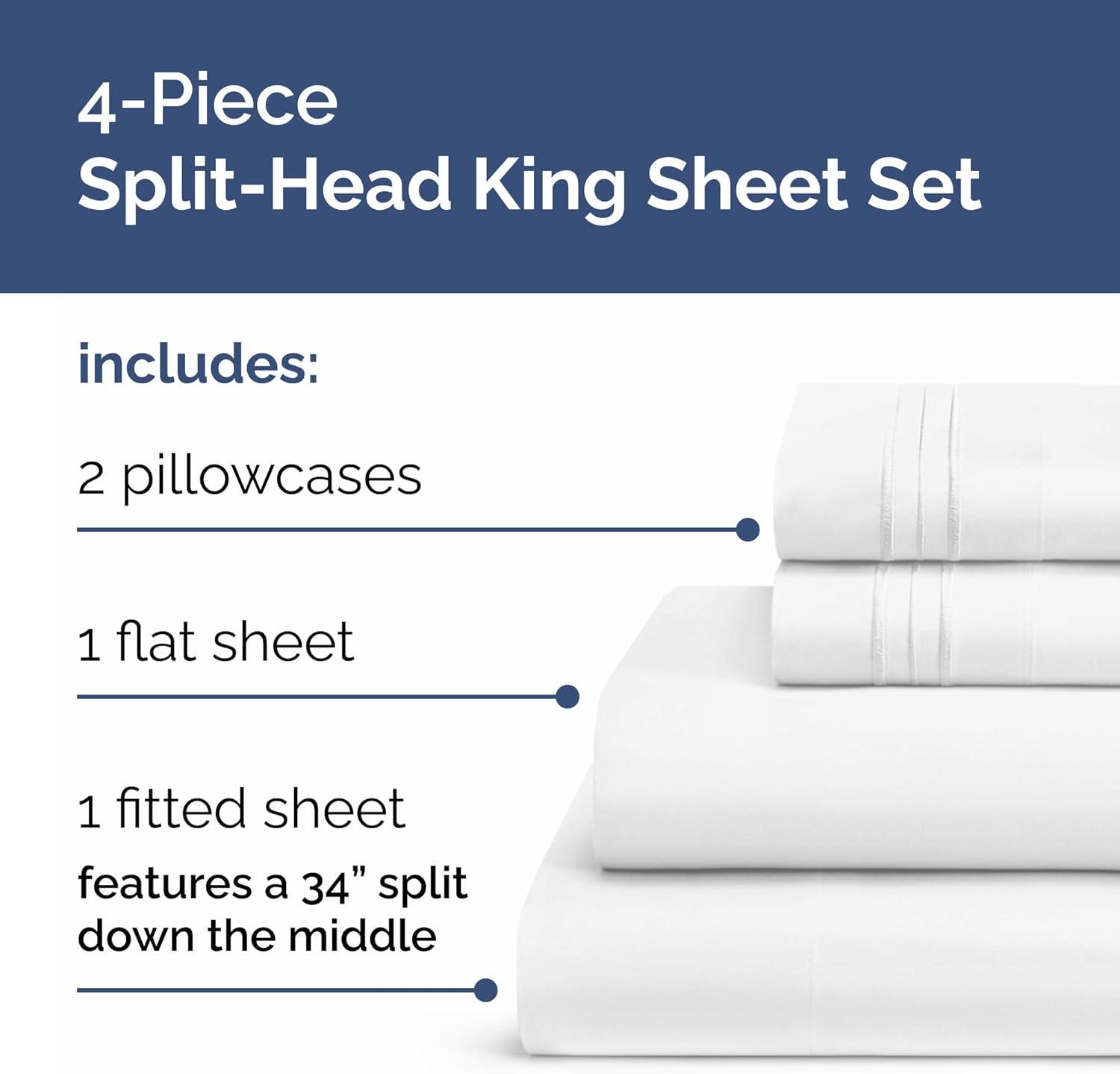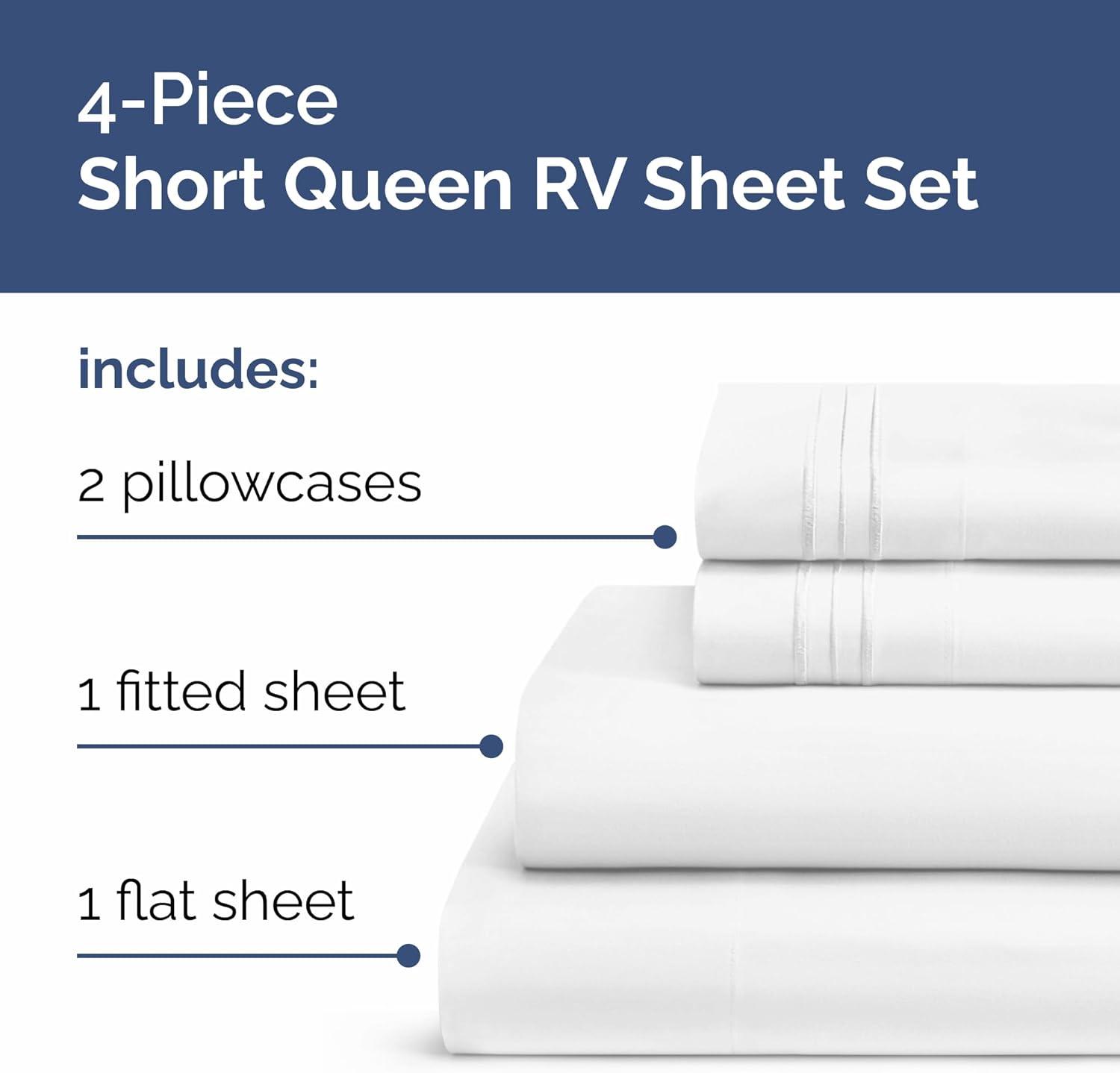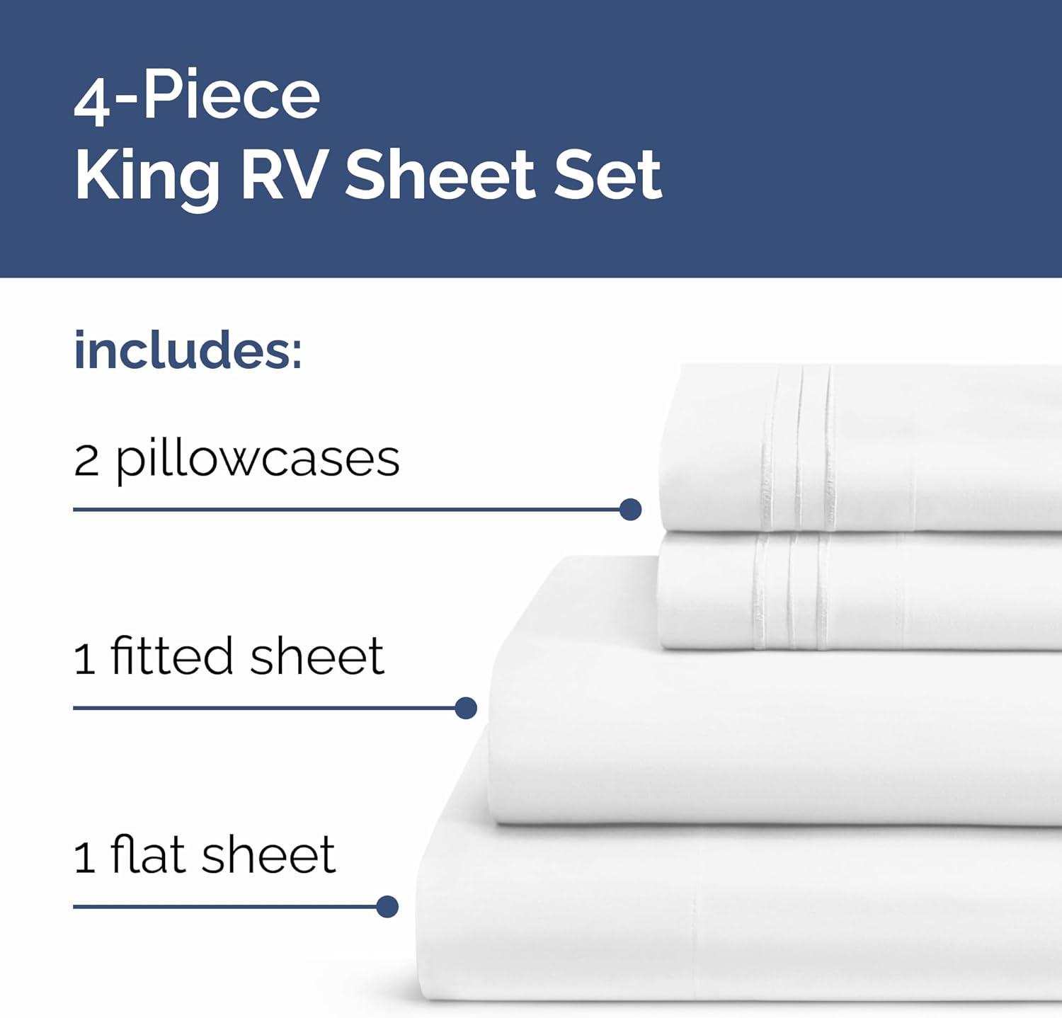 RV King Size Sheet Set 72 x 80 - 4 Piece RV King Bed Sheets - Soft, Breathable and Cooling - Designed for Bunks, Trailers & Campers - Fits 8” to 10" Mattress - Luxury Bedding & Wrinkle Free - White(White)