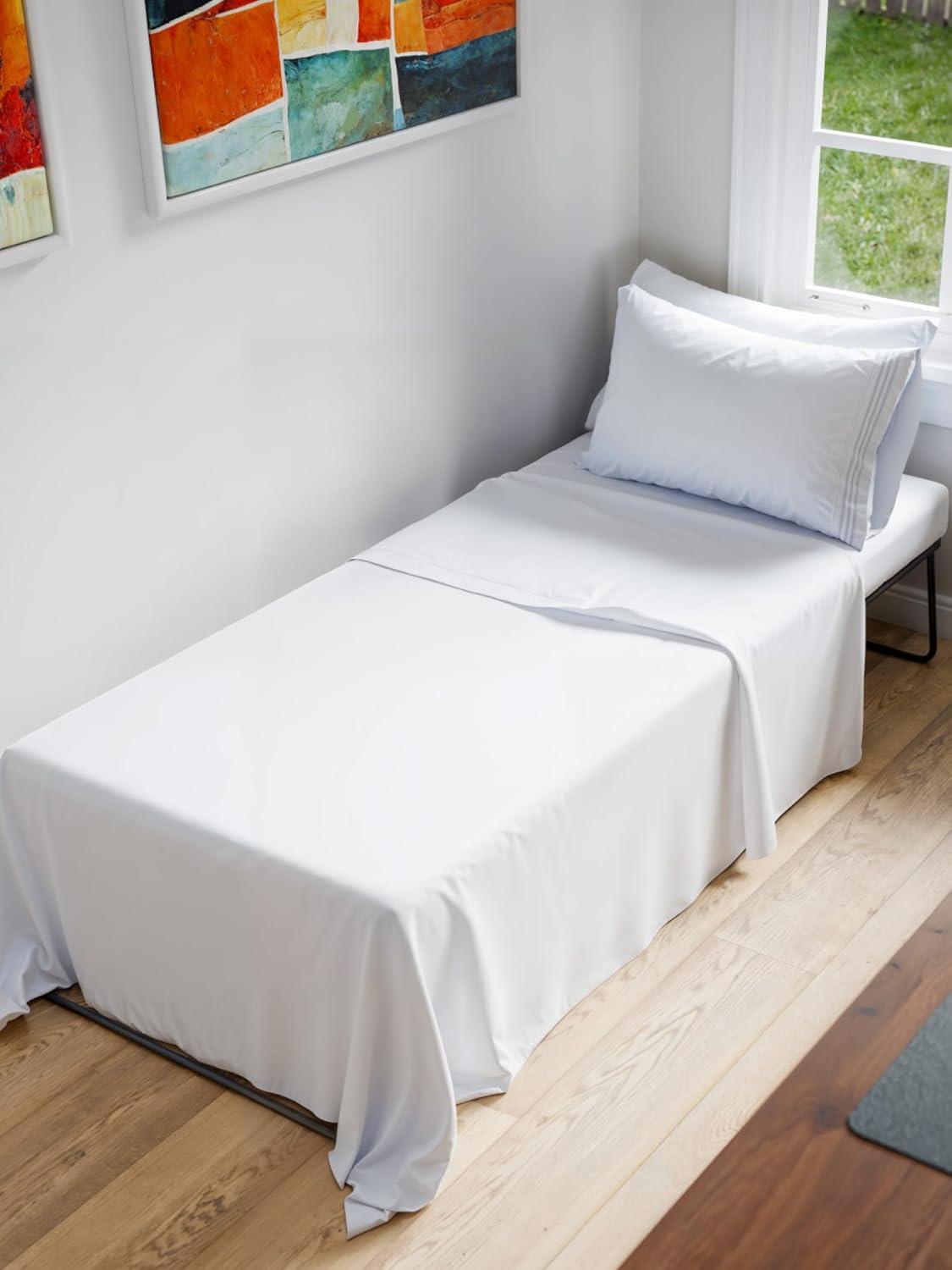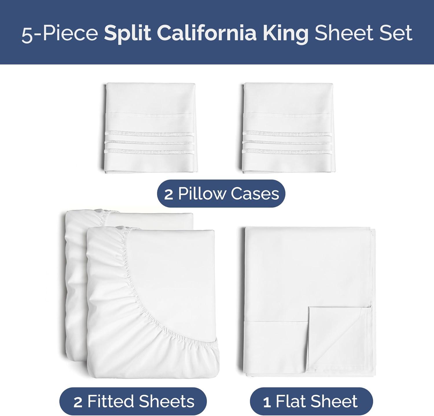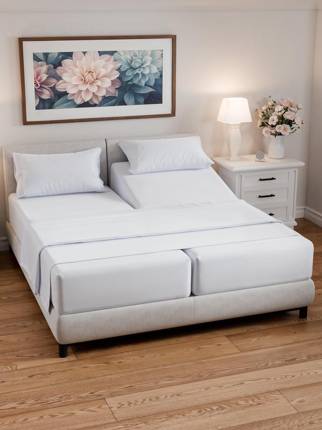 RV King Size Sheet Set 72 x 80 - 4 Piece RV King Bed Sheets - Soft, Breathable and Cooling - Designed for Bunks, Trailers & Campers - Fits 8” to 10" Mattress - Luxury Bedding & Wrinkle Free - White(White)