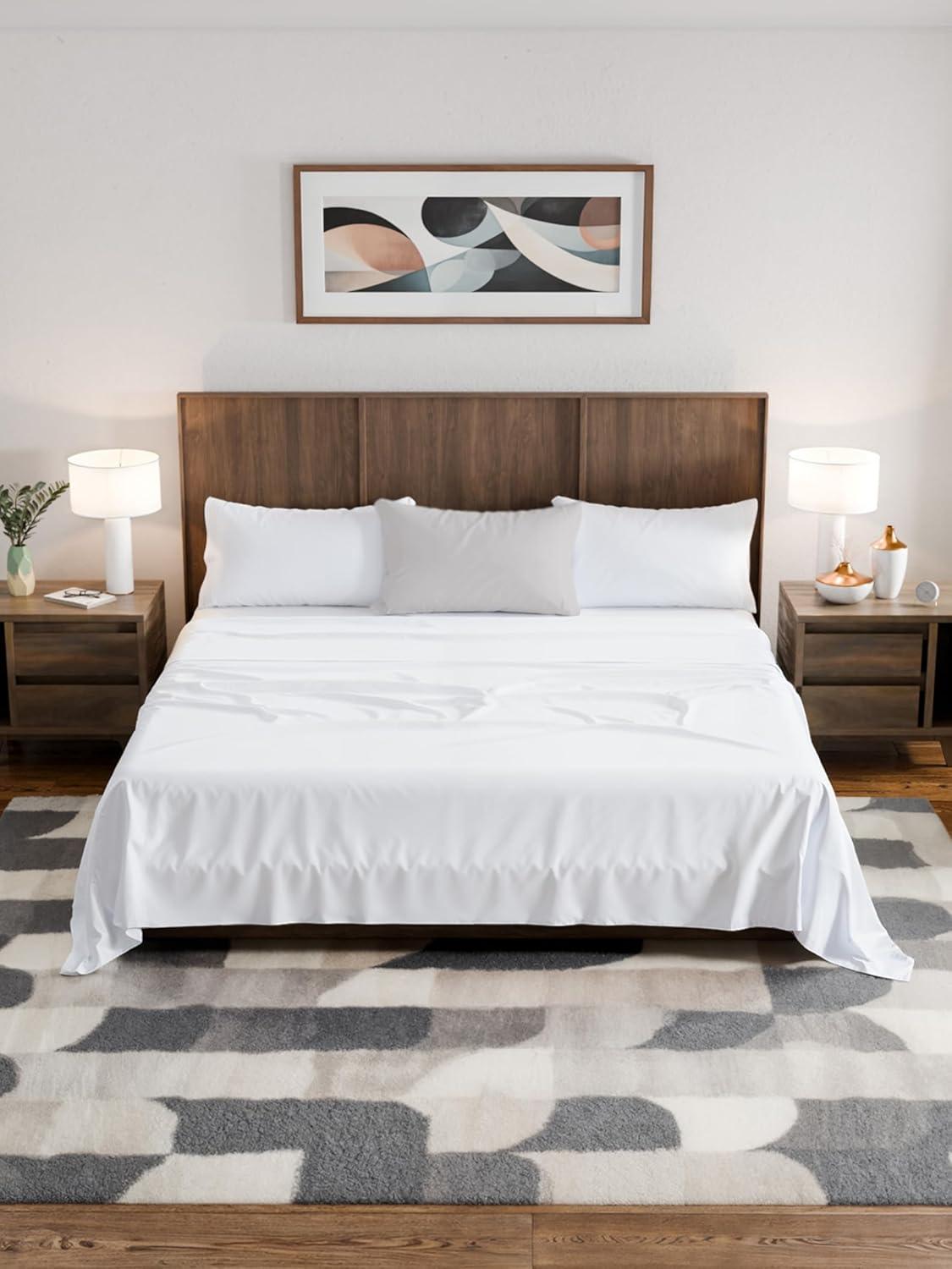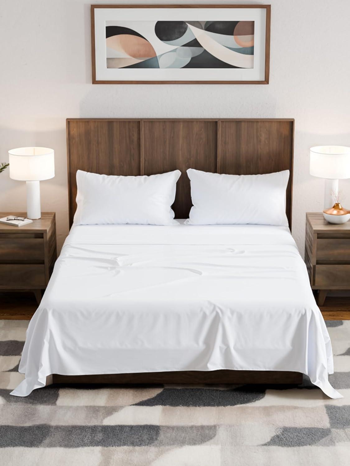 CGK Unlimited Queen Size Bed Sheets- Cooling & Breathable, 60% Polyester, 40% Rayon Derived from Bamboo Super Soft, Comfy Sheets for Hot Sleepers to Stay Cool (Queen, Light Grey)(01 – White)