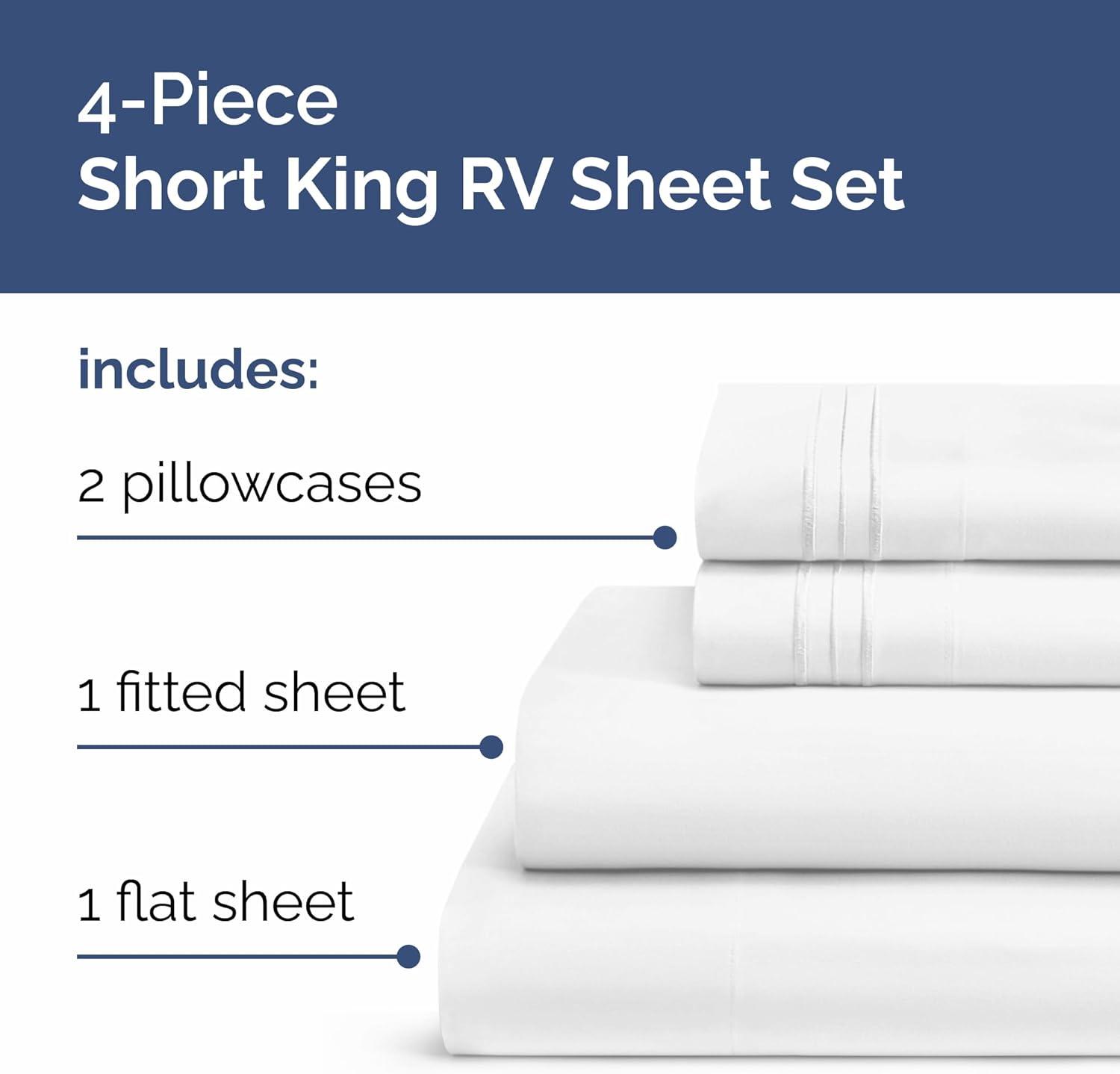 RV King Size Sheet Set 72 x 80 – 4 Piece RV King Bed Sheets – Soft, Breathable and Cooling – Designed for Bunks, Trailers & Campers – Fits 8” to 10″ Mattress – Luxury Bedding & Wrinkle Free – White(White)