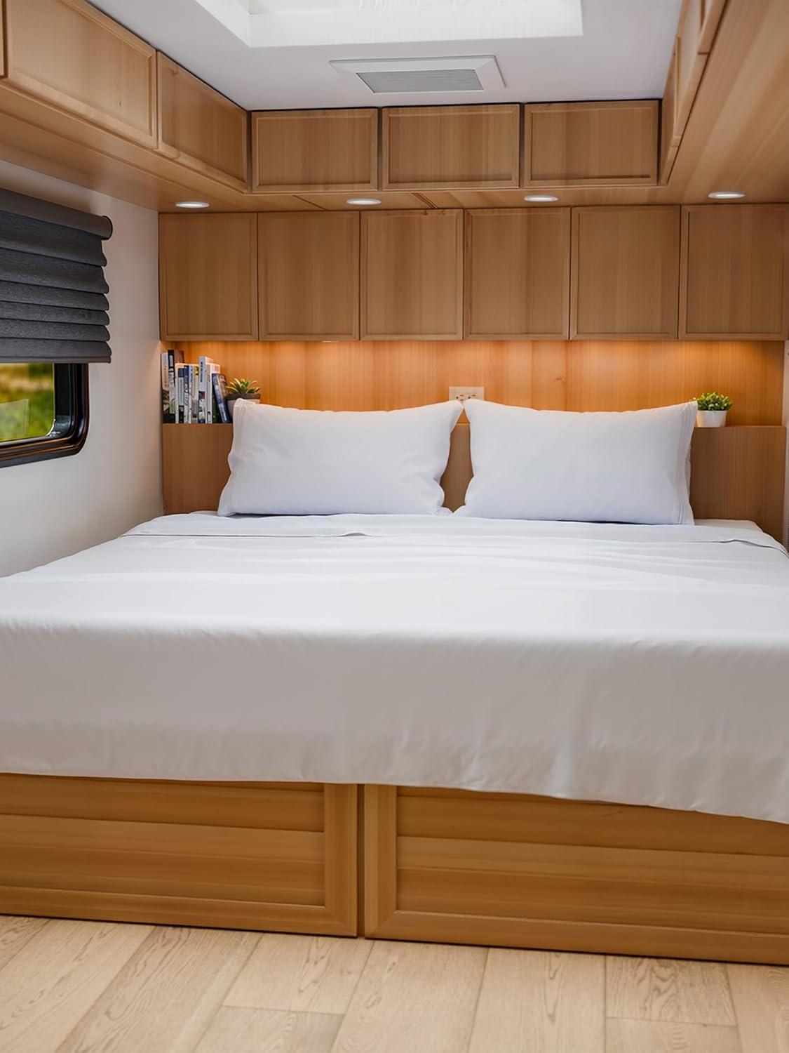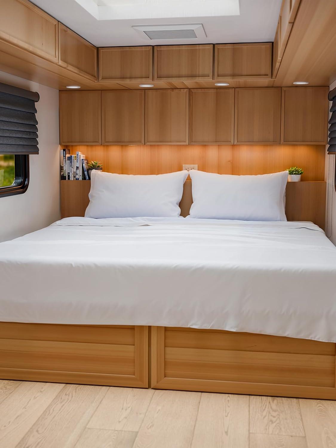 RV KING SIZE SHEET 72 X 80: Elevate your sleep experience with our RV King Size Sheets Set 72 x 80, made from exceptionally soft, durable fabric for unmatched comfort. These luxury RV King sheets are designed to provide a perfect fit and pair beautifully with your RV King comforter and mattress topper, creating a cozy and inviting atmosphere
