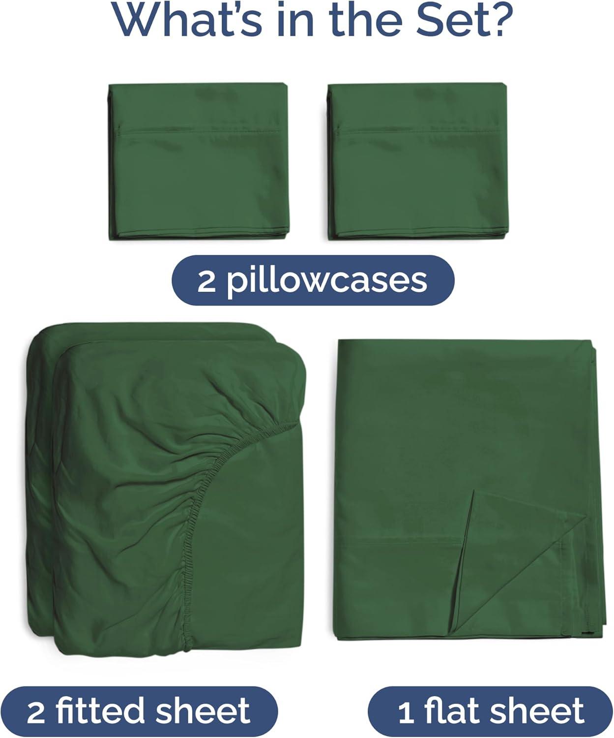 Sheets Queen Size – Cooling Sheets for Queen – 100% Rayon Derived from Bamboo – Soft, Breathable Hotel Luxury Bedding – 1 Flat, 1 Fitted & 2 Pillowcases w/ 16 Inch Deep Pockets – Emerald Green(06 – Emerald Green)