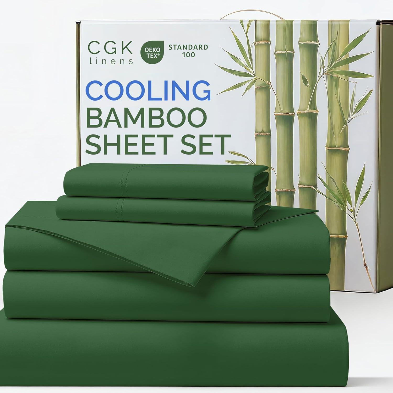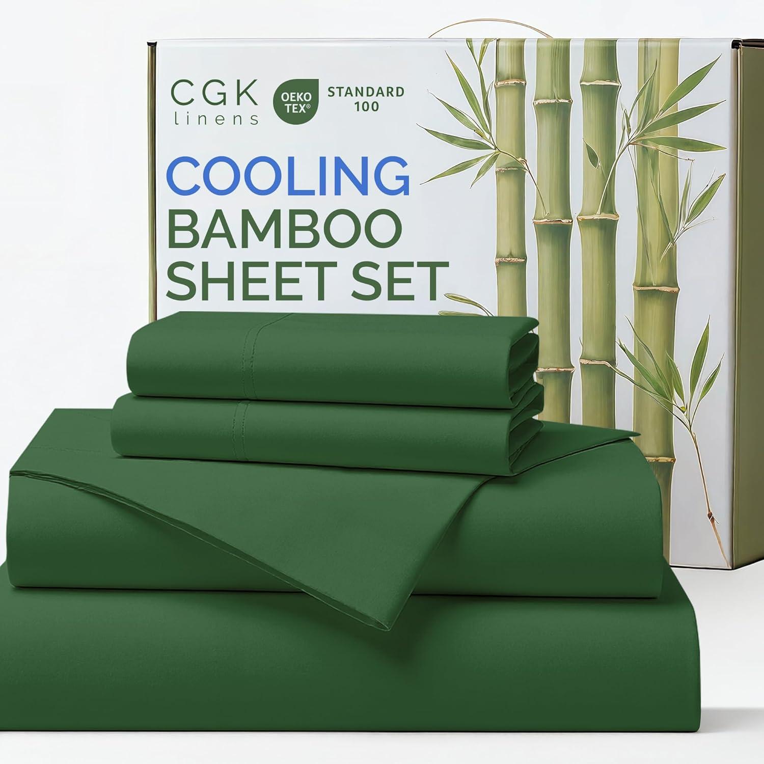 imageSheets Queen Size  Cooling Sheets for Queen  100 Rayon Derived from Bamboo  Soft Breathable Hotel Luxury Bedding  1 Flat 1 Fitted ampamp 2 Pillowcases w 16 Inch Deep Pockets  Emerald Green06  Emerald Green
