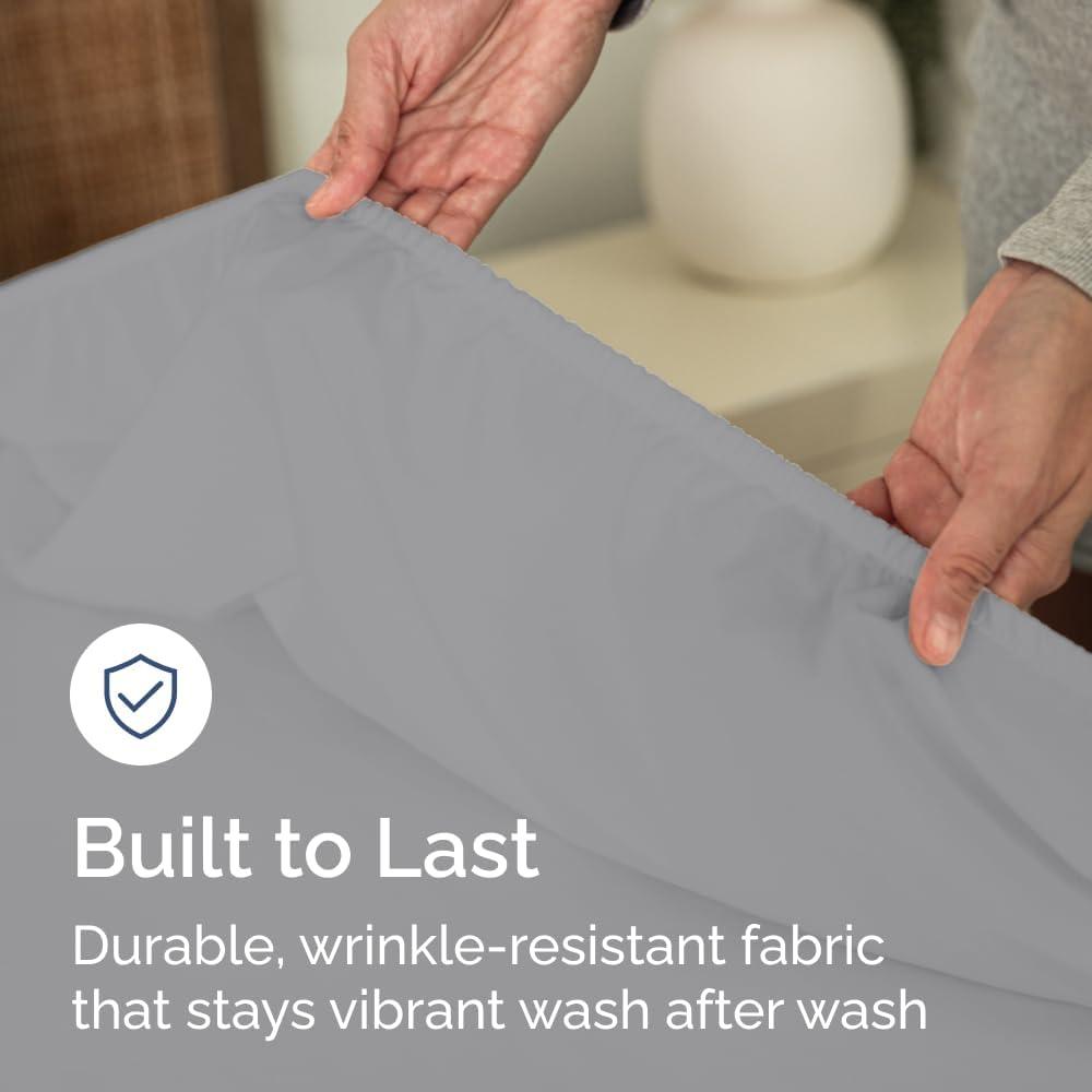WRINKLE-FREE & EASY-CARE – Treated to resist wrinkles, fading, and shrinkage, this fitted sheet comes out of the dryer looking smooth and fresh. Enjoy effortless care and long-lasting clean style.