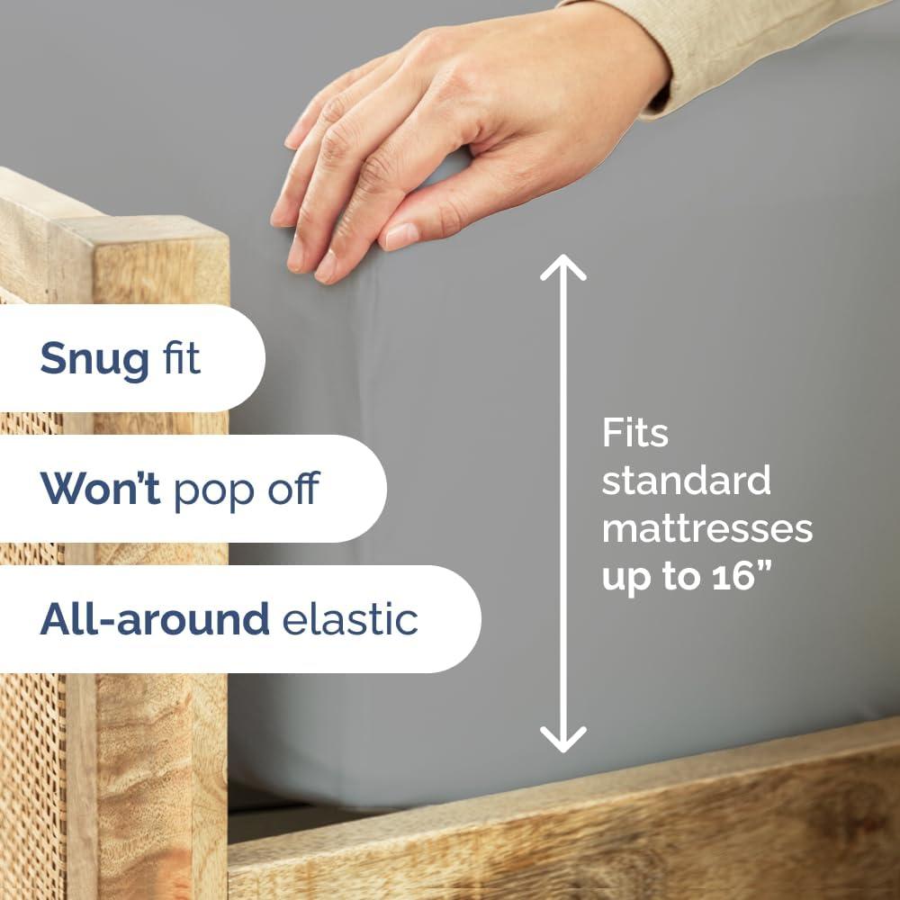 SNUG FIT THAT STAYS ON ALL NIGHT – Designed with deep pockets and 360° all-around elastic, this Split King fitted sheet hugs mattresses up to 16” thick—even with toppers or pads. No more slipping corners or bunching up while you sleep.