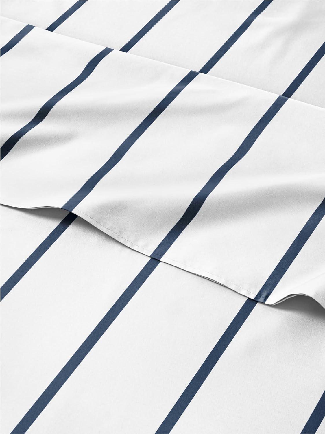 imageStriped Sheets  Blue ampamp White Striped Sheets  1 Flat ampamp 1 Fitted ampamp 2 Pillowcases w Deep Pockets  Wrinkle ampamp Fade Free  UltraSoft Breathable ampamp Cooling  Luxury Pinstripe Bedding  Cal King Size Set05  Navy Stripe
