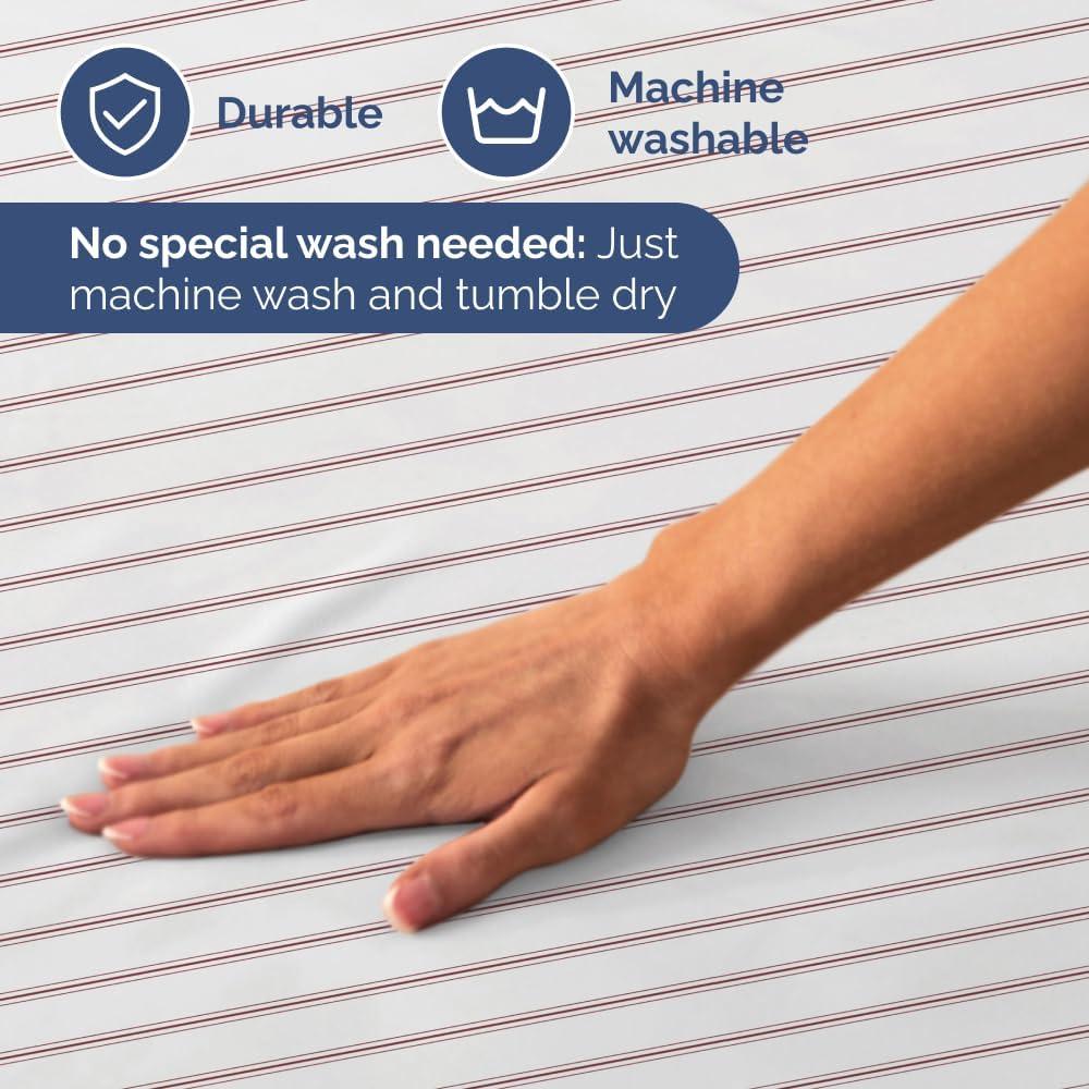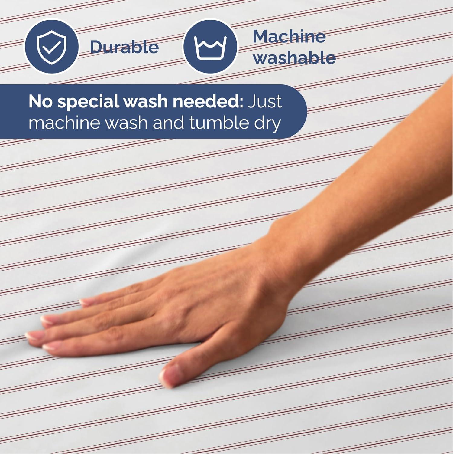 BOLD STRIPE DESIGNS: Elevate your Queen size bed with our eye-catching collection of striped designs, ranging from bold, modern lines to timeless pinstripes. Crafted with durability in mind, these sheets resist fading and maintain their vibrant appeal, perfect for adding a sleek, stylish touch to any bedroom.