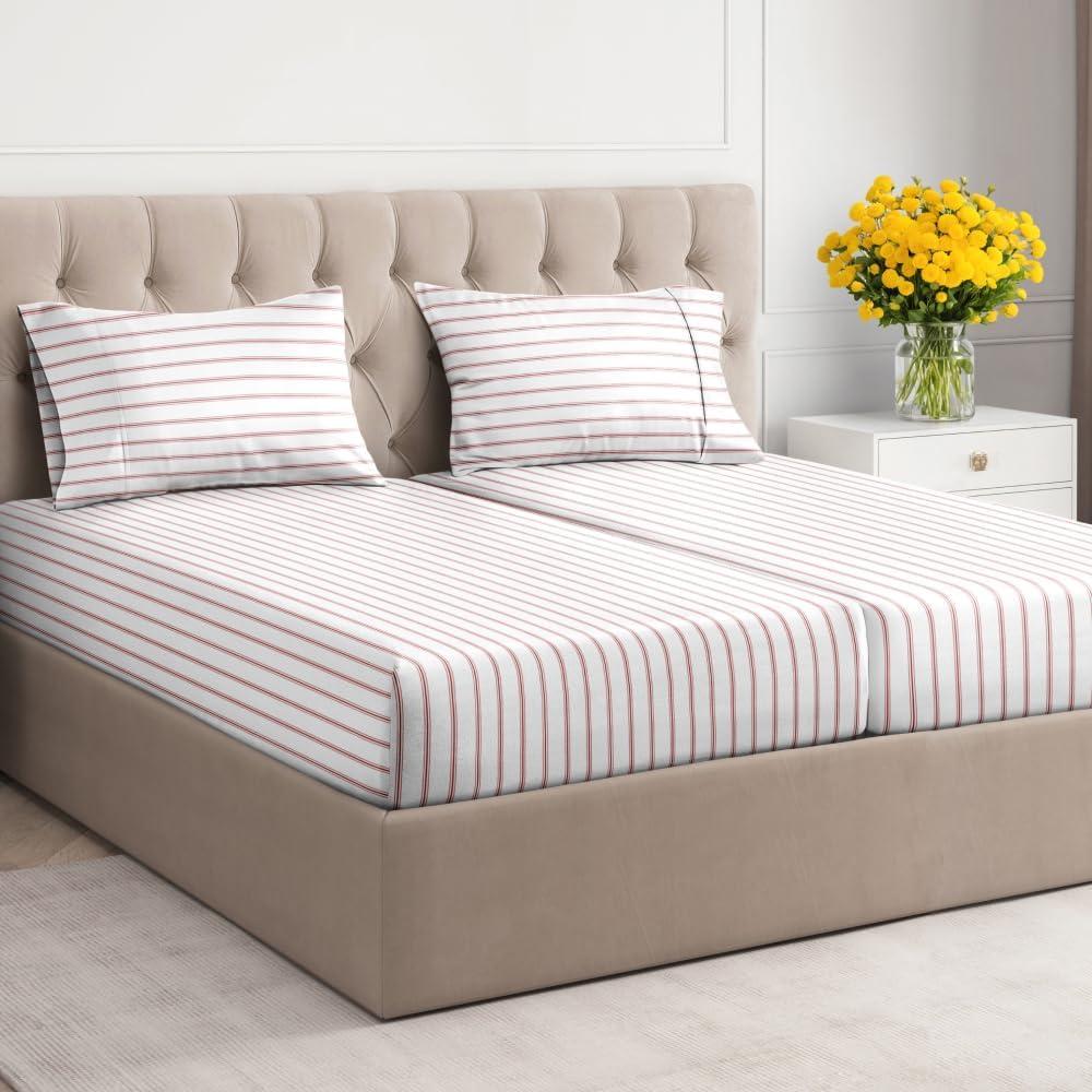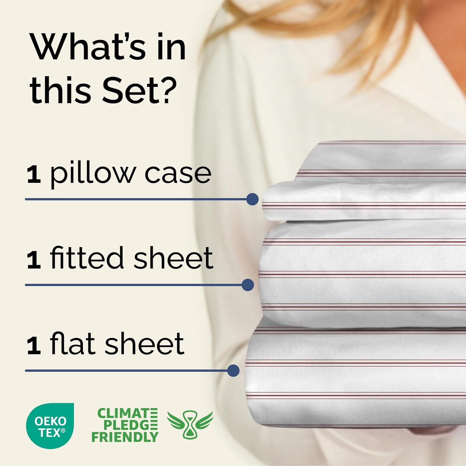 imageStriped Sheets  Grey Striped Sheets  1 Flat amp 1 Fitted amp 2 Pillowcases w Deep Pockets  Comfy Wrinkle amp Fade Free  UltraSoft Breathable amp Cooling  Luxury Pinstripe Bedding  Queen Size Bed Set39  Double Red