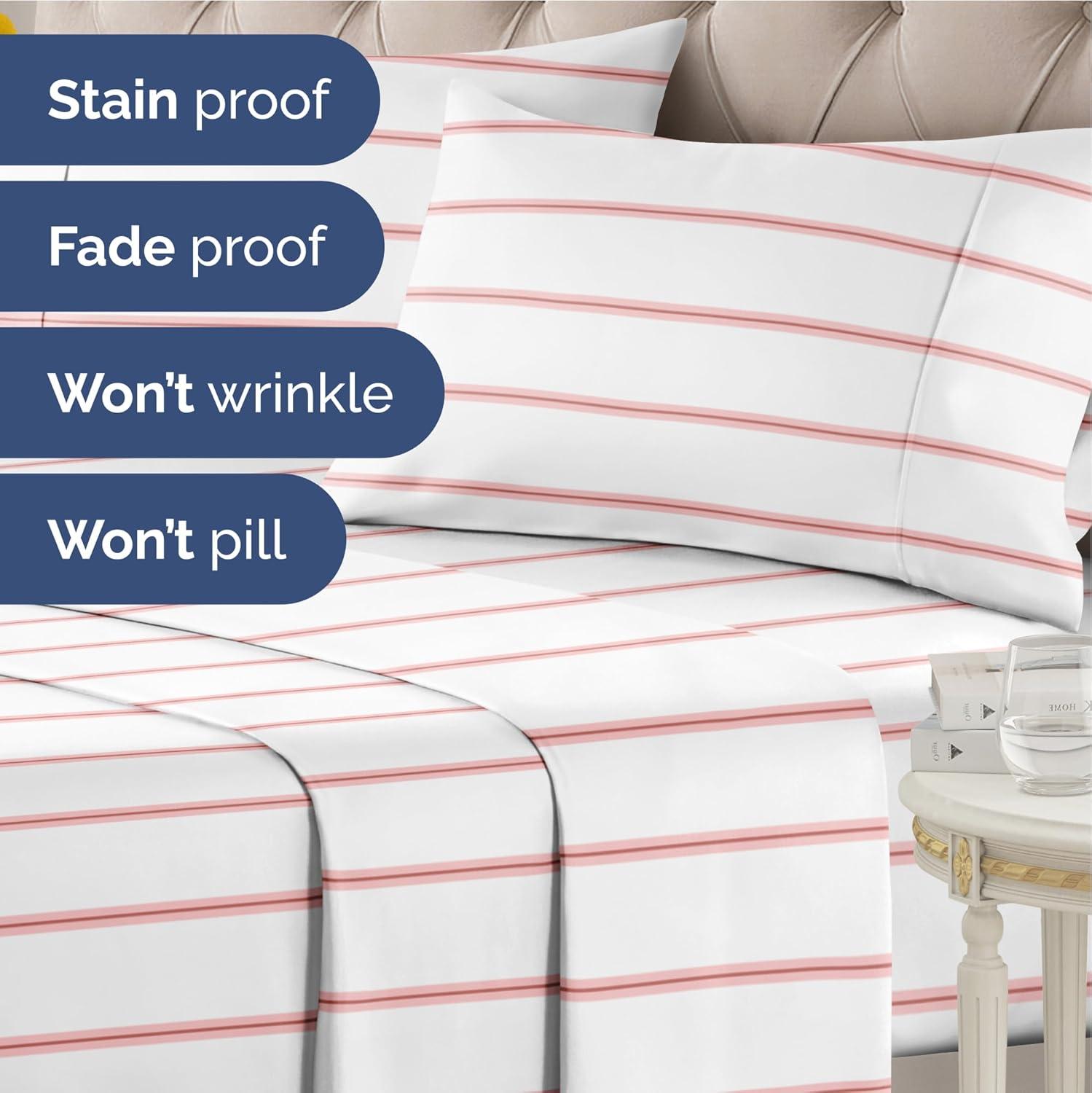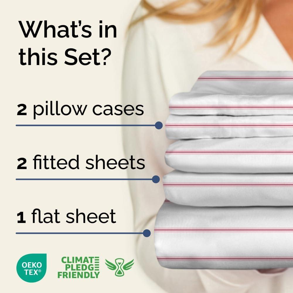 imageStriped Sheets  Grey Striped Sheets  1 Flat amp 1 Fitted amp 2 Pillowcases w Deep Pockets  Comfy Wrinkle amp Fade Free  UltraSoft Breathable amp Cooling  Luxury Pinstripe Bedding  Queen Size Bed Set40  Red Stripe