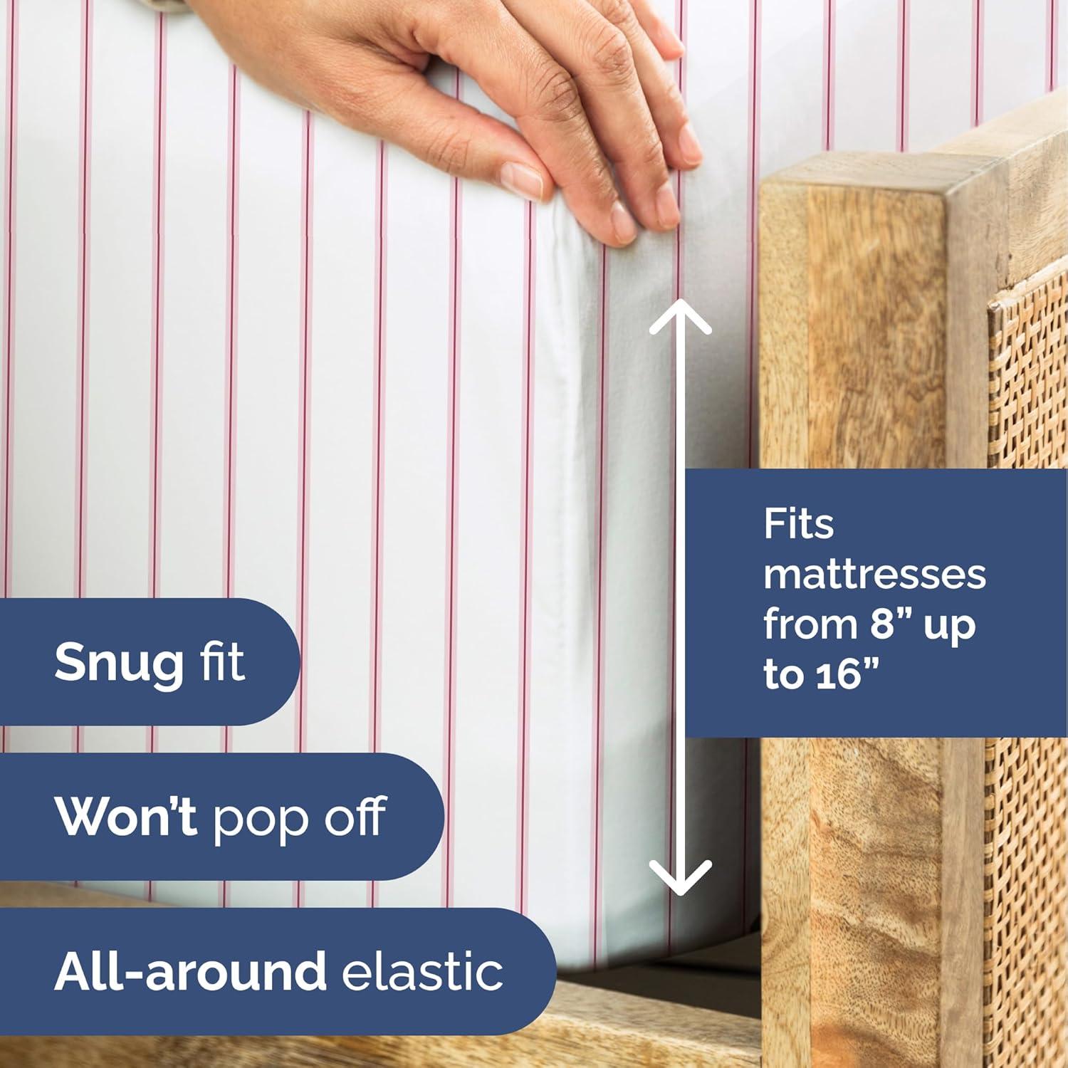 BOLD STRIPE DESIGNS: Elevate your Queen size bed with our eye-catching collection of striped designs, ranging from bold, modern lines to timeless pinstripes. Crafted with durability in mind, these sheets resist fading and maintain their vibrant appeal, perfect for adding a sleek, stylish touch to any bedroom.