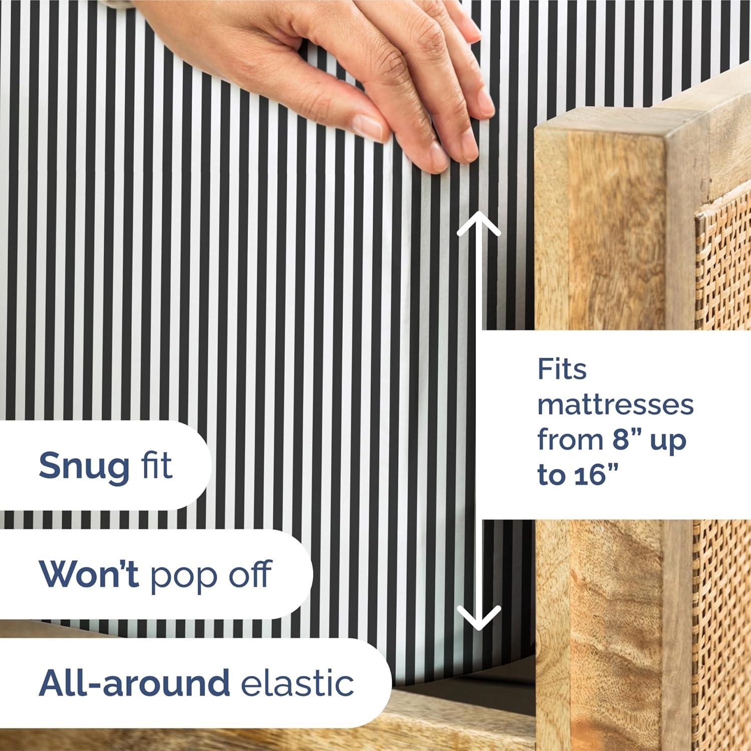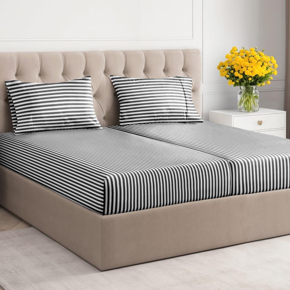 BOLD STRIPE DESIGNS: Elevate your Queen size bed with our eye-catching collection of striped designs, ranging from bold, modern lines to timeless pinstripes. Crafted with durability in mind, these sheets resist fading and maintain their vibrant appeal, perfect for adding a sleek, stylish touch to any bedroom.