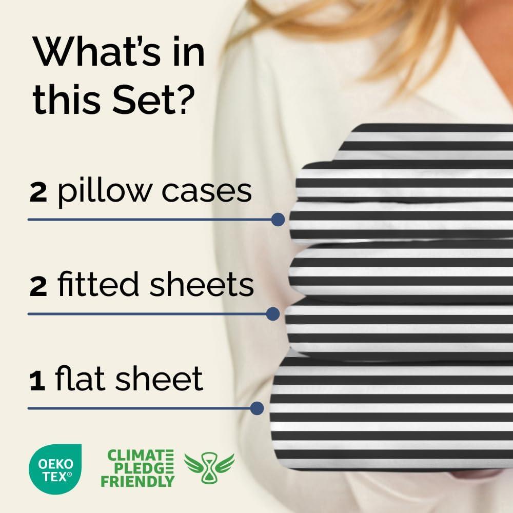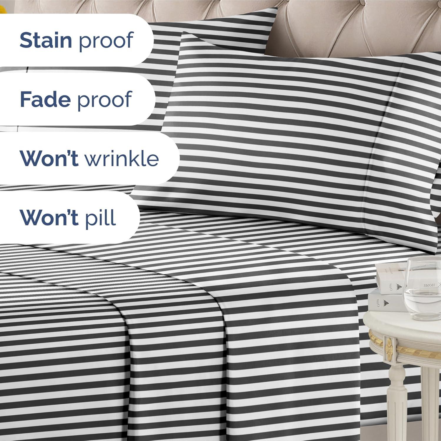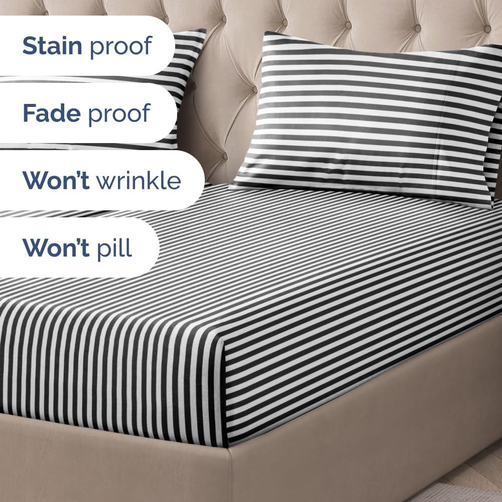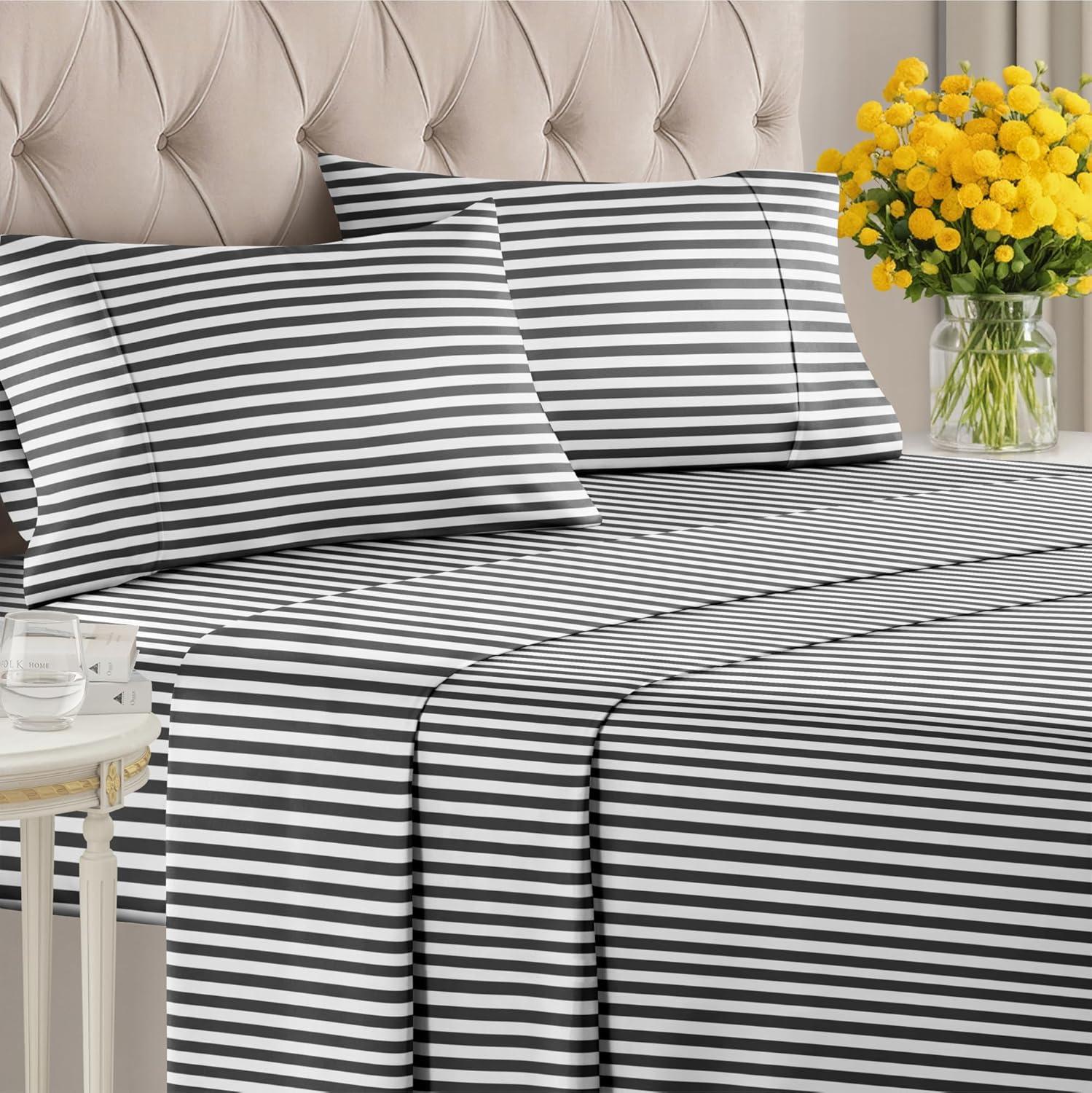 imageStriped Sheets  Grey Striped Sheets  1 Flat amp 1 Fitted amp 2 Pillowcases w Deep Pockets  Comfy Wrinkle amp Fade Free  UltraSoft Breathable amp Cooling  Luxury Pinstripe Bedding  Queen Size Bed Set47  Black Pinstripe
