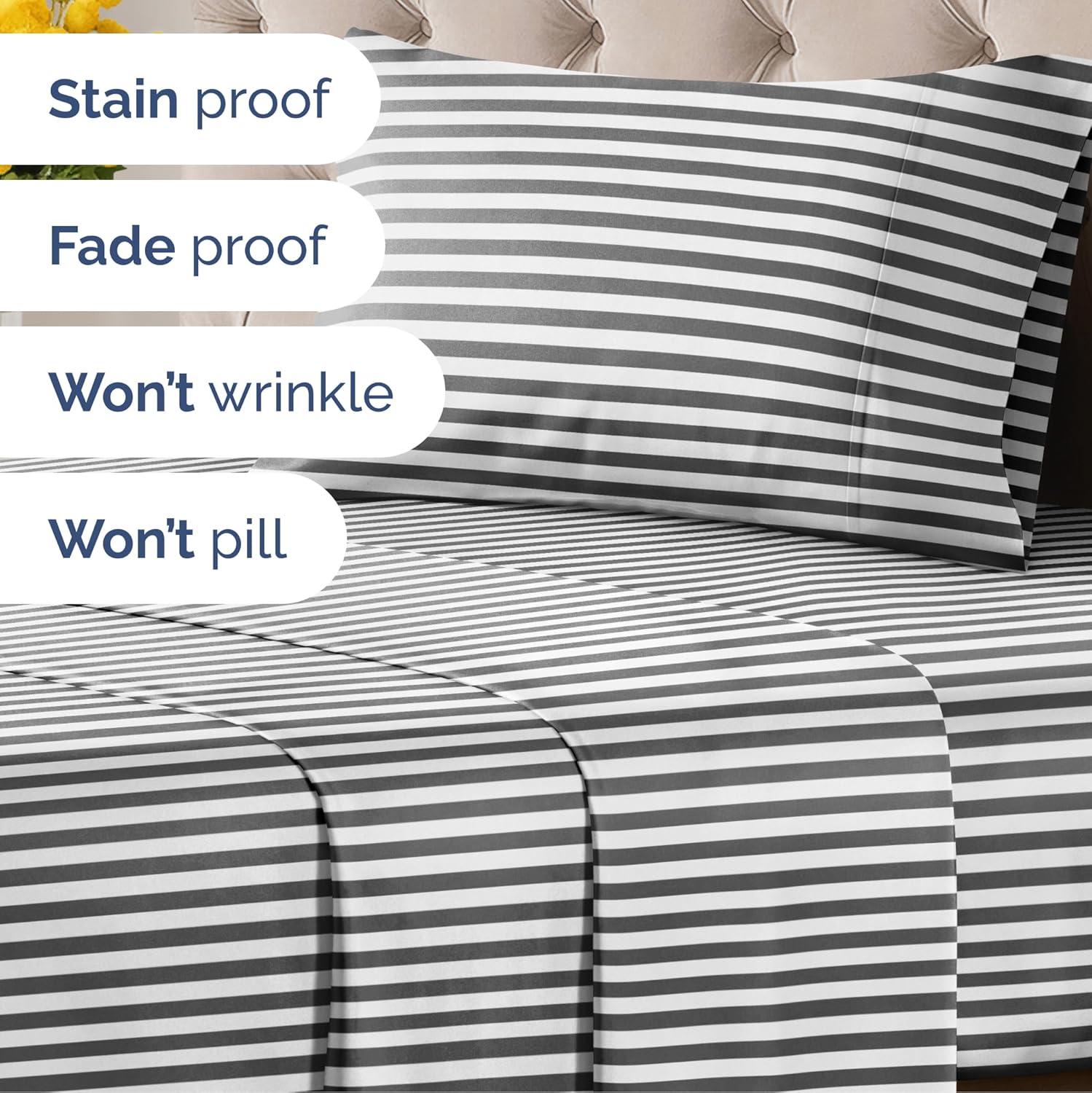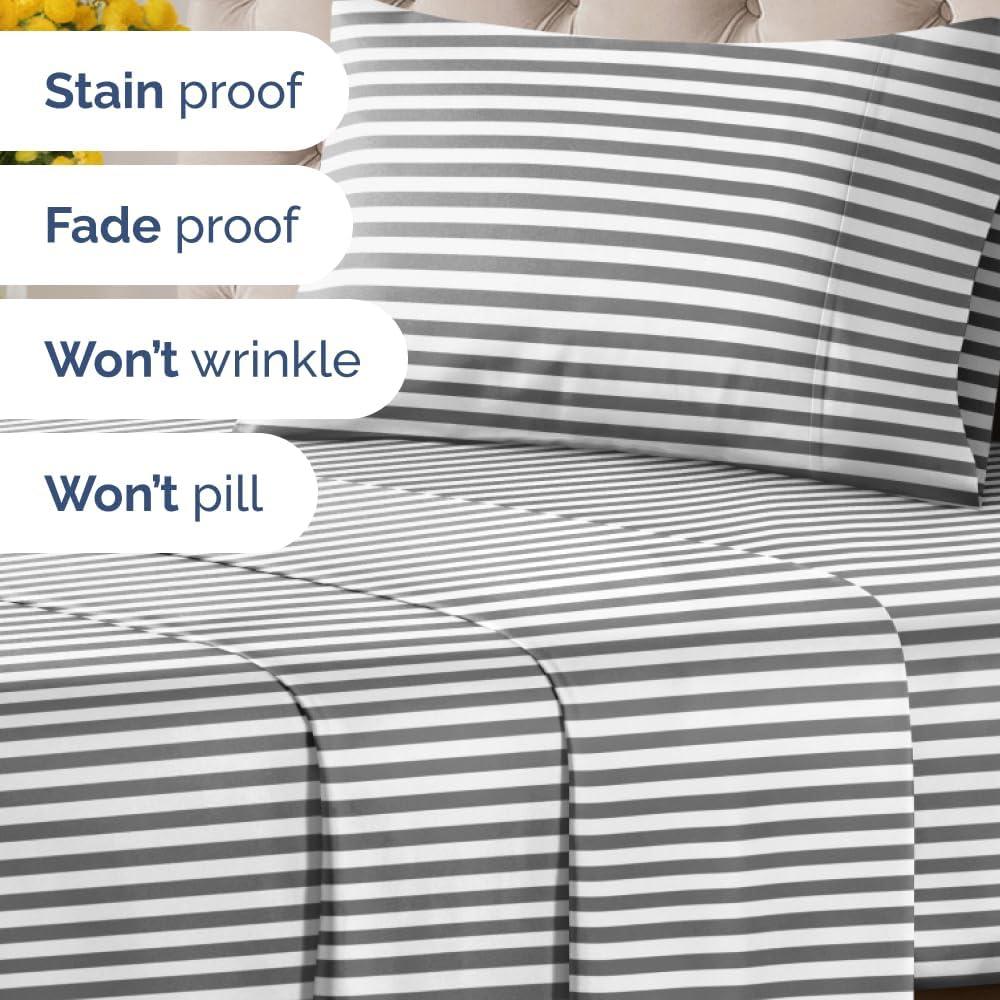 imageStriped Sheets  Grey Striped Sheets  1 Flat amp 1 Fitted amp 2 Pillowcases w Deep Pockets  Comfy Wrinkle amp Fade Free  UltraSoft Breathable amp Cooling  Luxury Pinstripe Bedding  Queen Size Bed Set46  Railroad Stripe