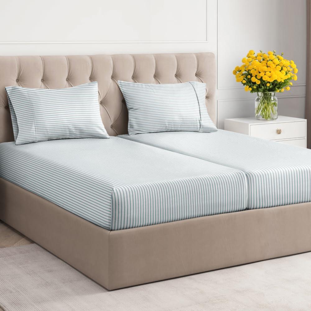 Striped Sheets - Grey Striped Sheets - 1 Flat & 1 Fitted & 2 Pillowcases w/ Deep Pockets – Comfy, Wrinkle & Fade Free - Ultra-Soft, Breathable & Cooling – Luxury Pinstripe Bedding - Queen Size Bed Set(31 - Sky Stripe)