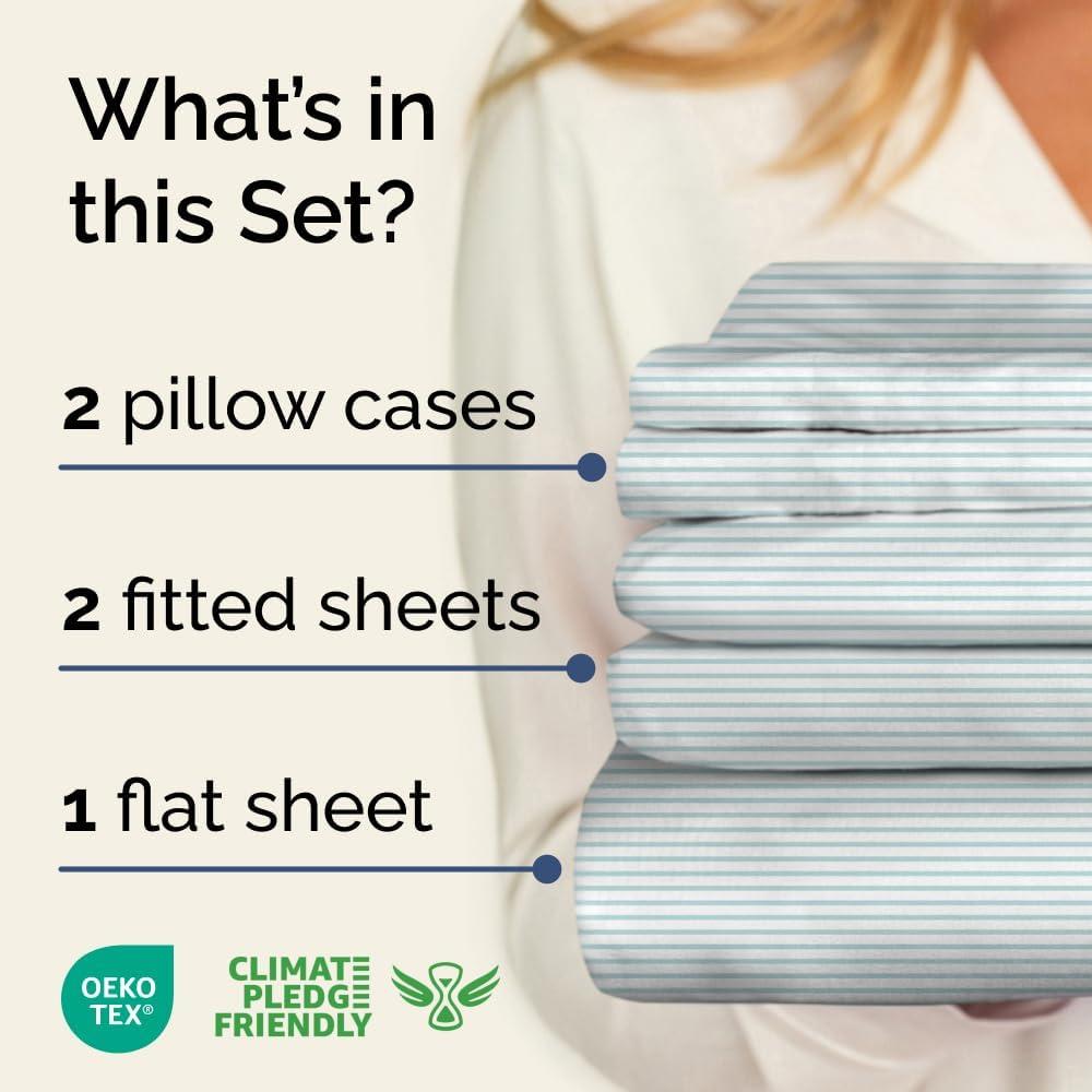 imageStriped Sheets  Grey Striped Sheets  1 Flat amp 1 Fitted amp 2 Pillowcases w Deep Pockets  Comfy Wrinkle amp Fade Free  UltraSoft Breathable amp Cooling  Luxury Pinstripe Bedding  Queen Size Bed Set32  Blue Stripe
