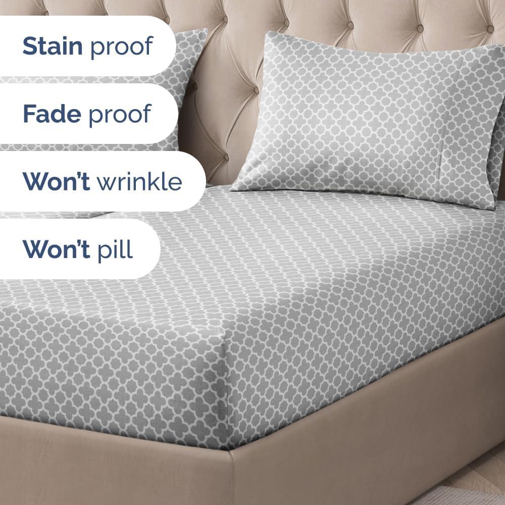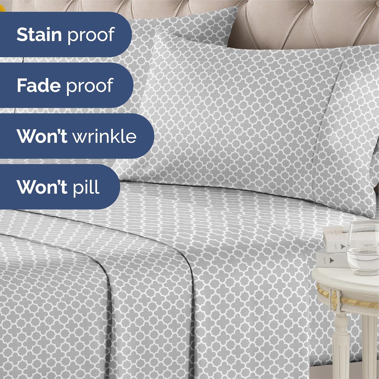 imageStriped Sheets  Grey Striped Sheets  1 Flat amp 1 Fitted amp 2 Pillowcases w Deep Pockets  Comfy Wrinkle amp Fade Free  UltraSoft Breathable amp Cooling  Luxury Pinstripe Bedding  Queen Size Bed Set55  Navy Quatrefoil