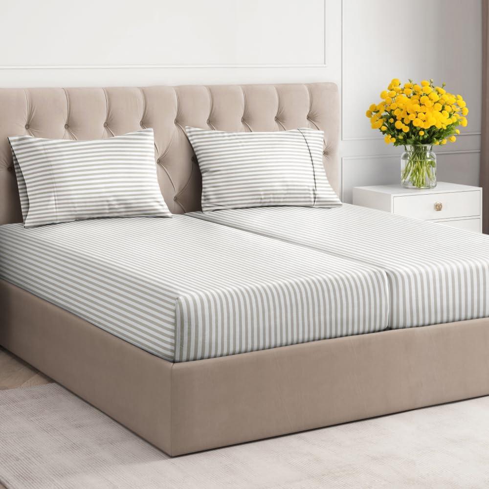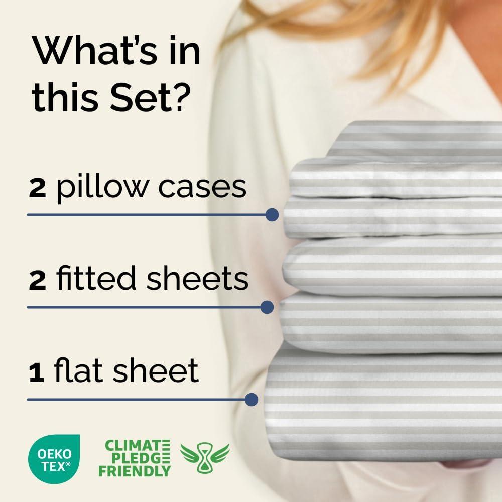 imageStriped Sheets  Grey Striped Sheets  1 Flat amp 1 Fitted amp 2 Pillowcases w Deep Pockets  Comfy Wrinkle amp Fade Free  UltraSoft Breathable amp Cooling  Luxury Pinstripe Bedding  Queen Size Bed Set58  Grey Stripe