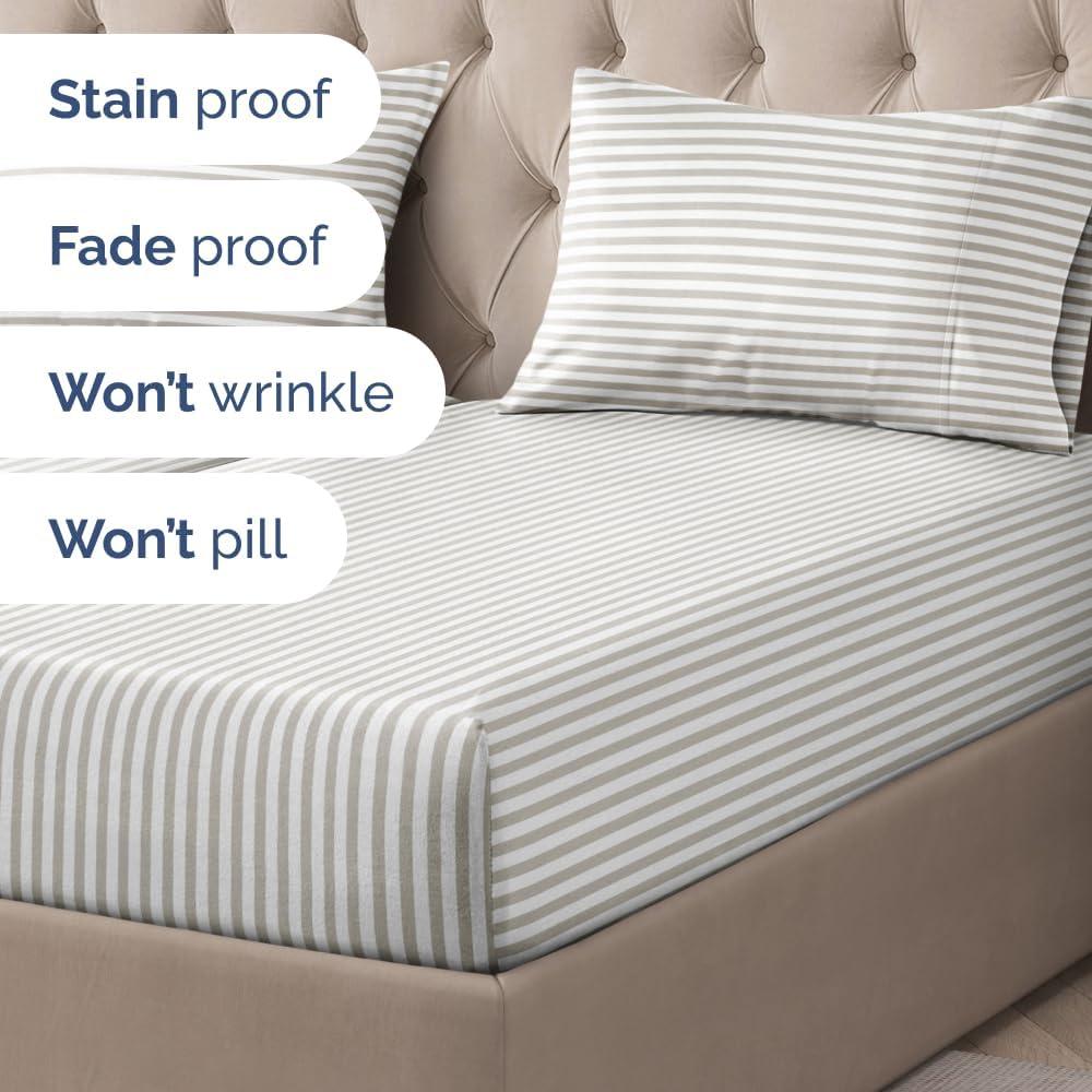 BOLD STRIPE DESIGNS: Elevate your Queen size bed with our eye-catching collection of striped designs, ranging from bold, modern lines to timeless pinstripes. Crafted with durability in mind, these sheets resist fading and maintain their vibrant appeal, perfect for adding a sleek, stylish touch to any bedroom.