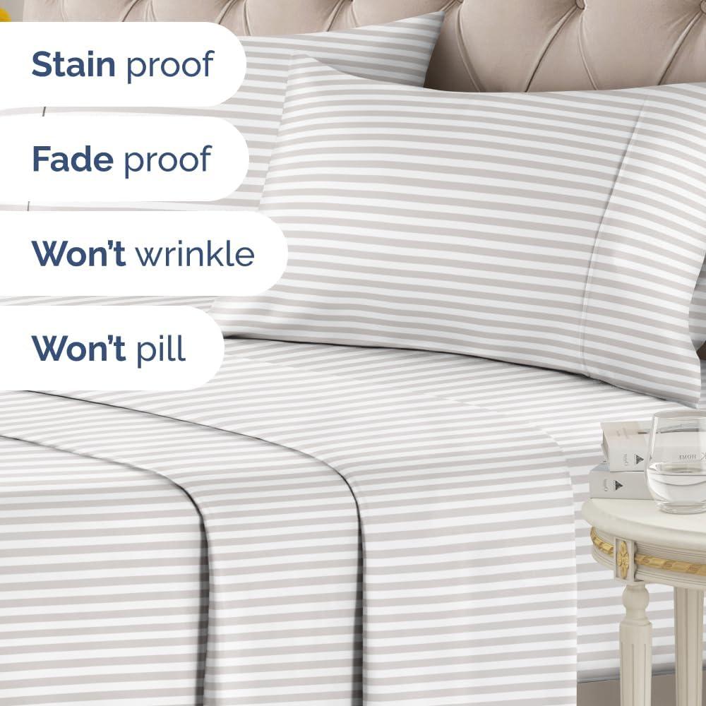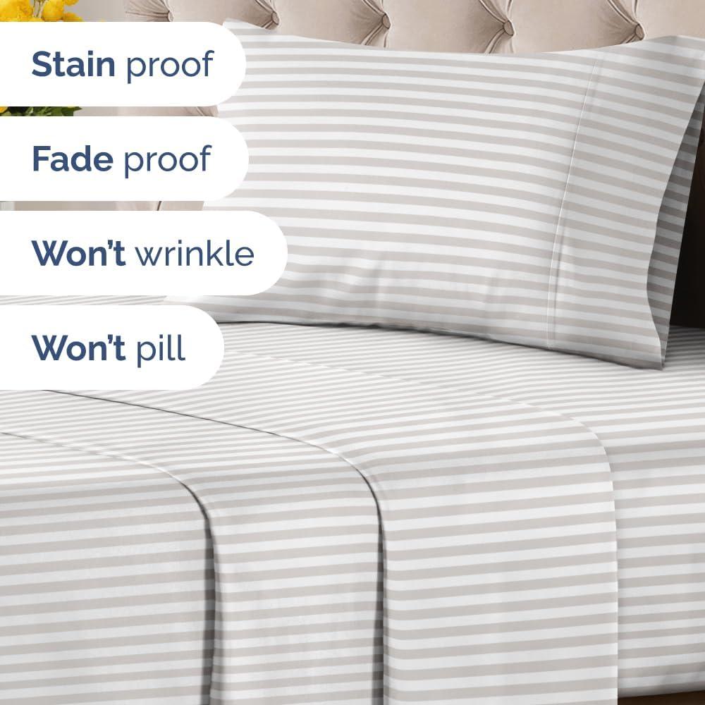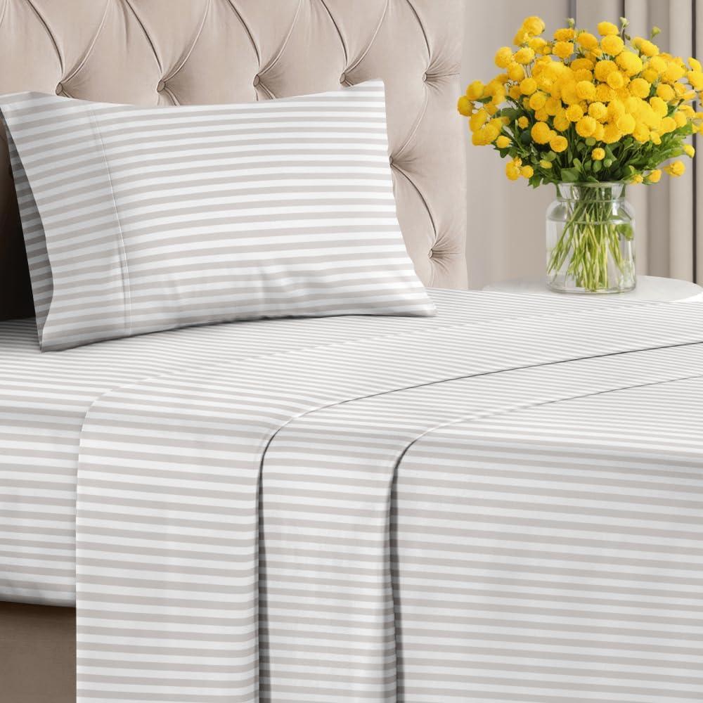 imageStriped Sheets  Grey Striped Sheets  1 Flat amp 1 Fitted amp 2 Pillowcases w Deep Pockets  Comfy Wrinkle amp Fade Free  UltraSoft Breathable amp Cooling  Luxury Pinstripe Bedding  Queen Size Bed Set62  French Country