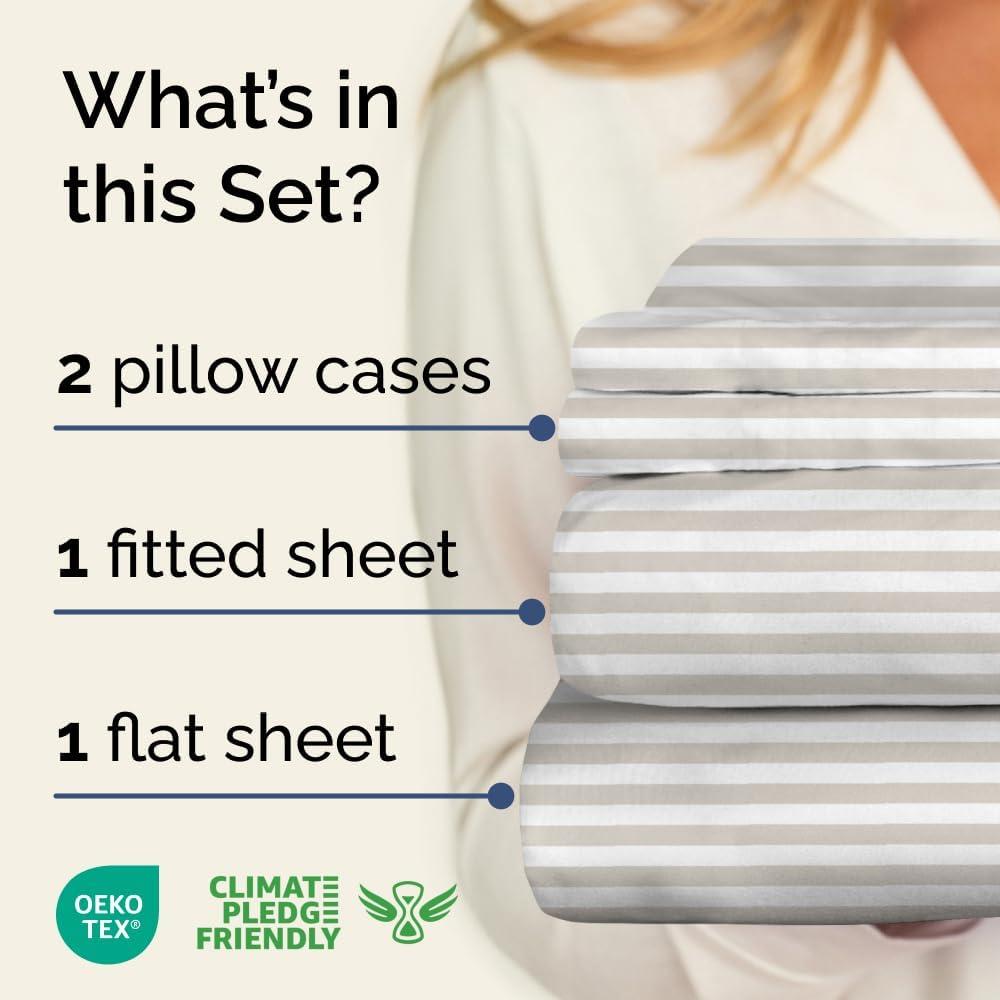 imageStriped Sheets  Grey Striped Sheets  1 Flat amp 1 Fitted amp 2 Pillowcases w Deep Pockets  Comfy Wrinkle amp Fade Free  UltraSoft Breathable amp Cooling  Luxury Pinstripe Bedding  Queen Size Bed Set60  Misty Stripes