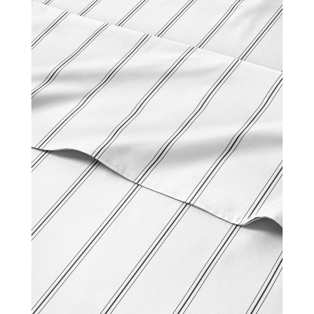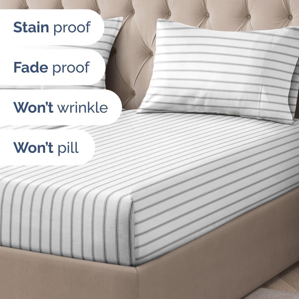 GREY STRIPED SHEETS: Featuring a classic Grey & White striped design, this ultra-soft, wrinkle & fade-resistant set boasts deep pockets for a secure fit and is crafted from premium, breathable fabric—perfect for a stylish, easy-care bedroom upgrade.