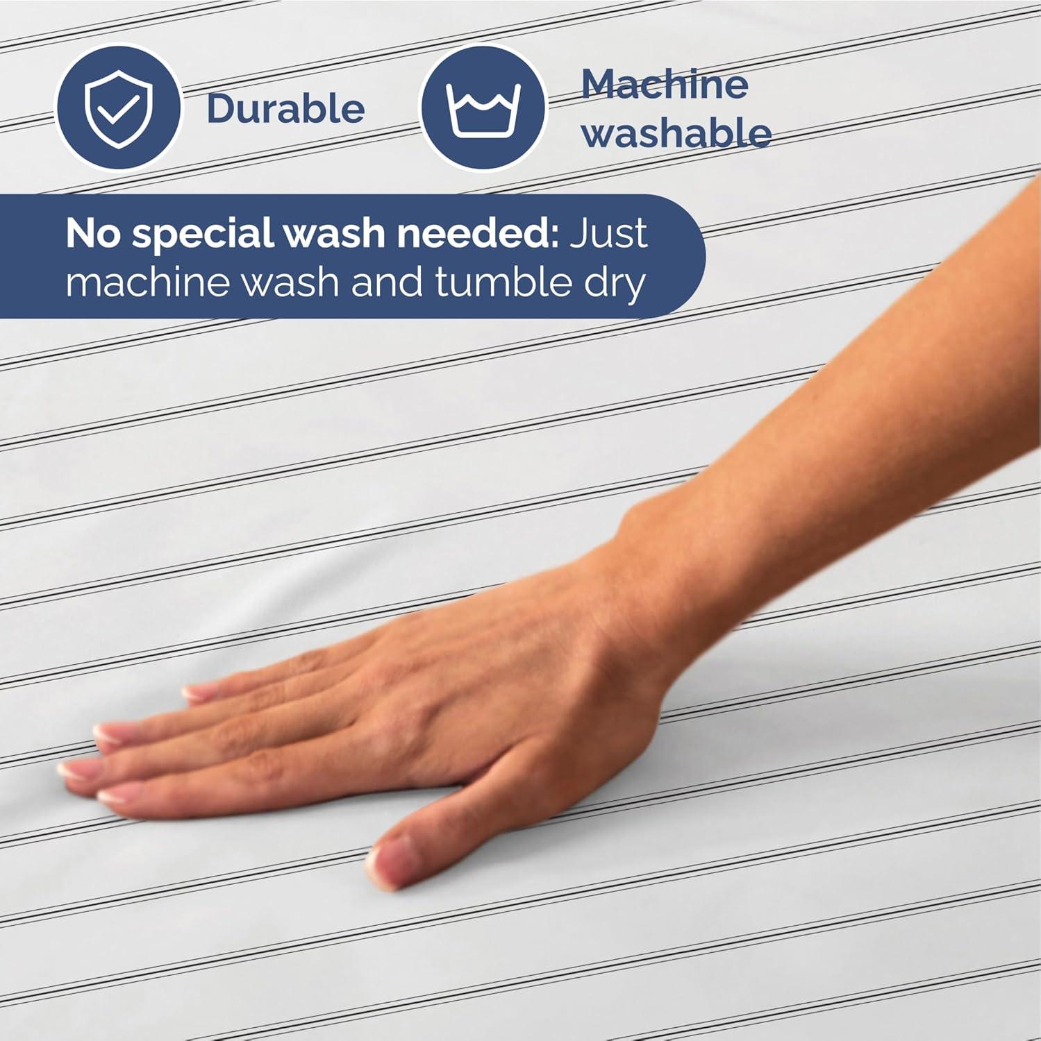 BOLD STRIPE DESIGNS: Elevate your Queen size bed with our eye-catching collection of striped designs, ranging from bold, modern lines to timeless pinstripes. Crafted with durability in mind, these sheets resist fading and maintain their vibrant appeal, perfect for adding a sleek, stylish touch to any bedroom.