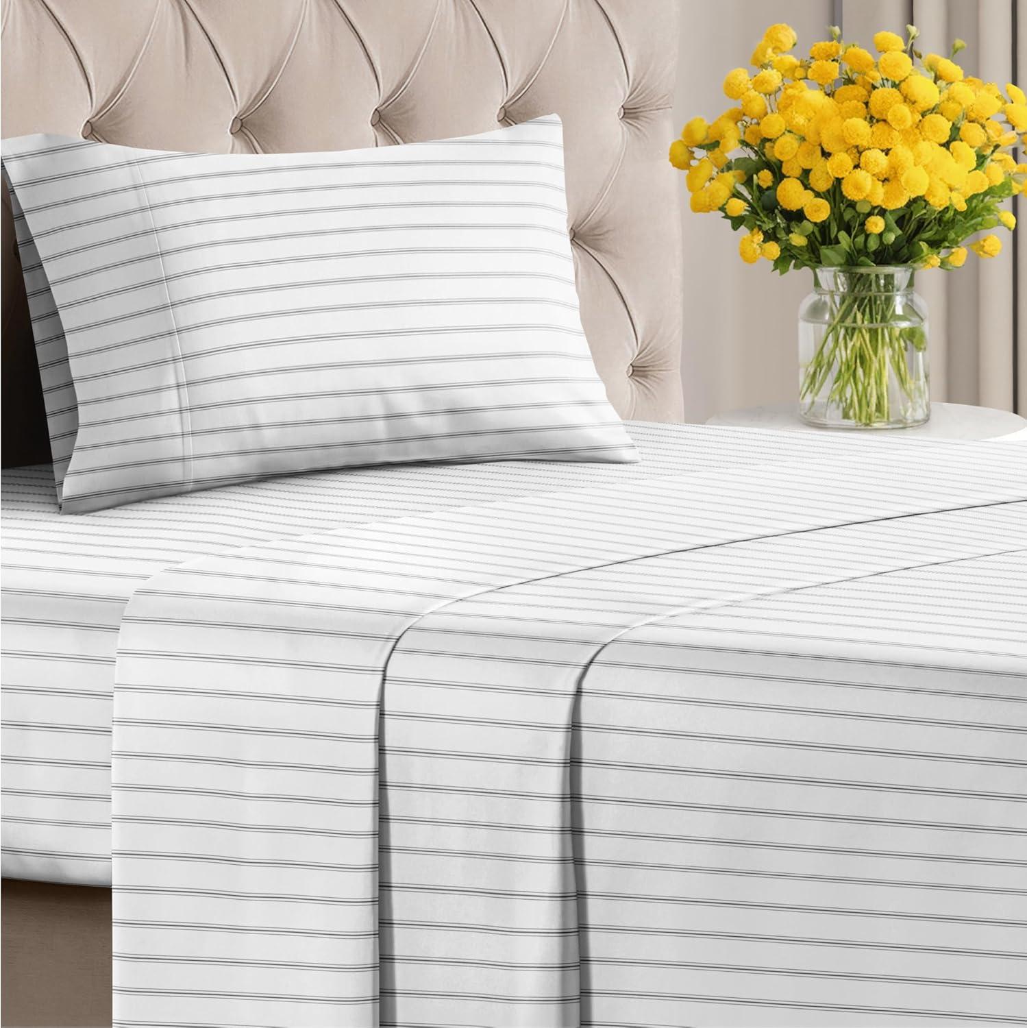imageStriped Sheets  Grey Striped Sheets  1 Flat amp 1 Fitted amp 2 Pillowcases w Deep Pockets  Comfy Wrinkle amp Fade Free  UltraSoft Breathable amp Cooling  Luxury Pinstripe Bedding  Queen Size Bed Set64  Double Black