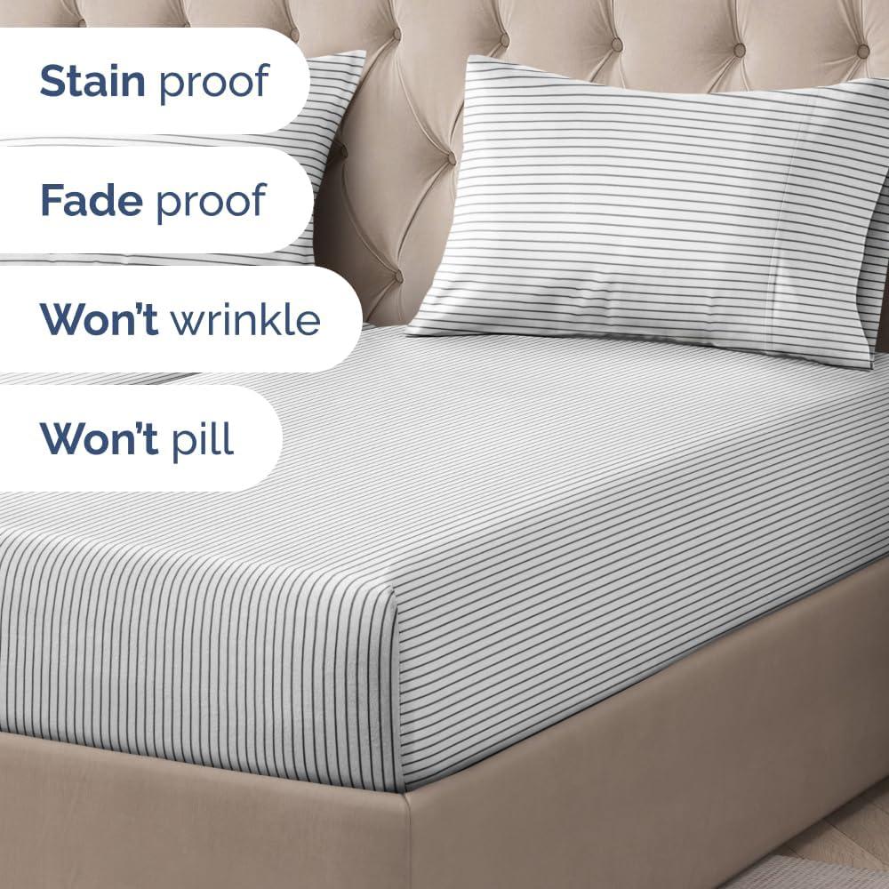 imageStriped Sheets  Grey Striped Sheets  1 Flat amp 1 Fitted amp 2 Pillowcases w Deep Pockets  Comfy Wrinkle amp Fade Free  UltraSoft Breathable amp Cooling  Luxury Pinstripe Bedding  Queen Size Bed Set34  Navy Stripe