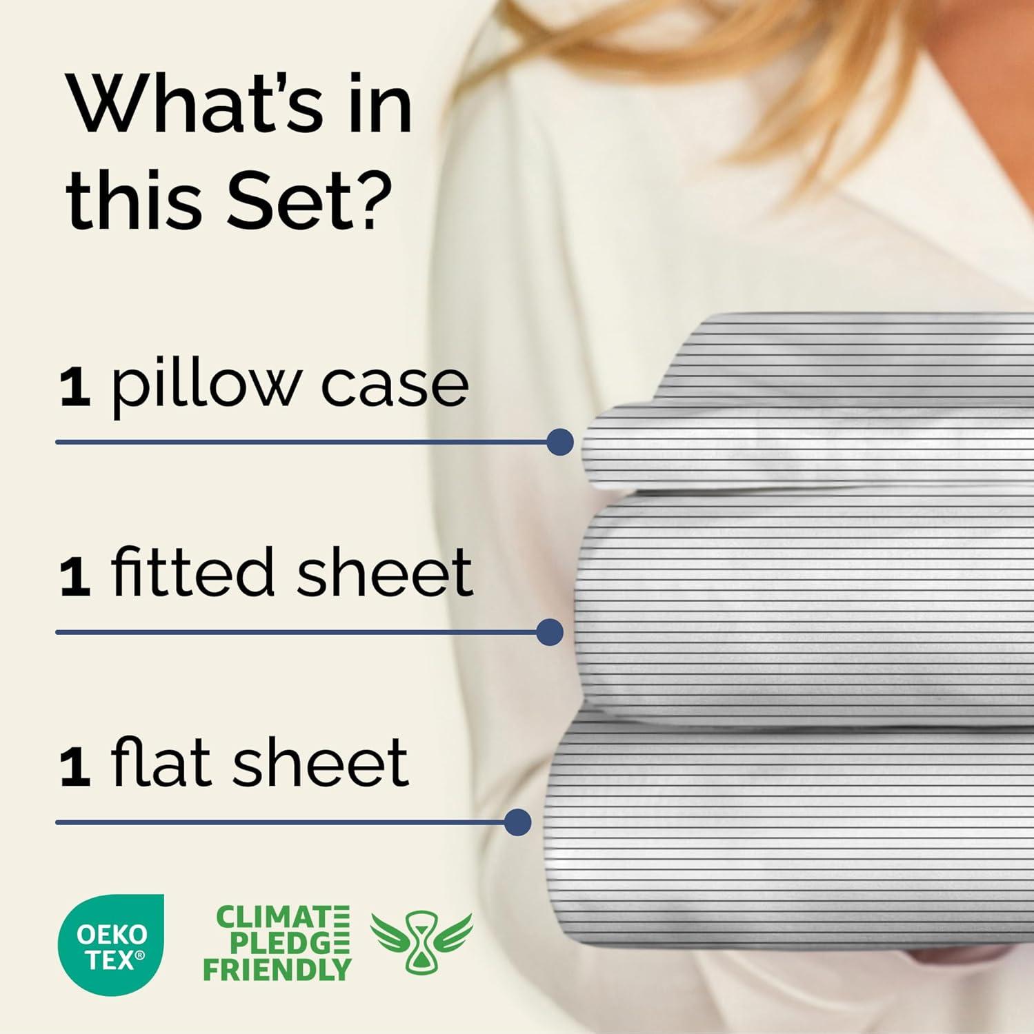 imageStriped Sheets  Grey Striped Sheets  1 Flat amp 1 Fitted amp 2 Pillowcases w Deep Pockets  Comfy Wrinkle amp Fade Free  UltraSoft Breathable amp Cooling  Luxury Pinstripe Bedding  Queen Size Bed Set33  Fine Lines