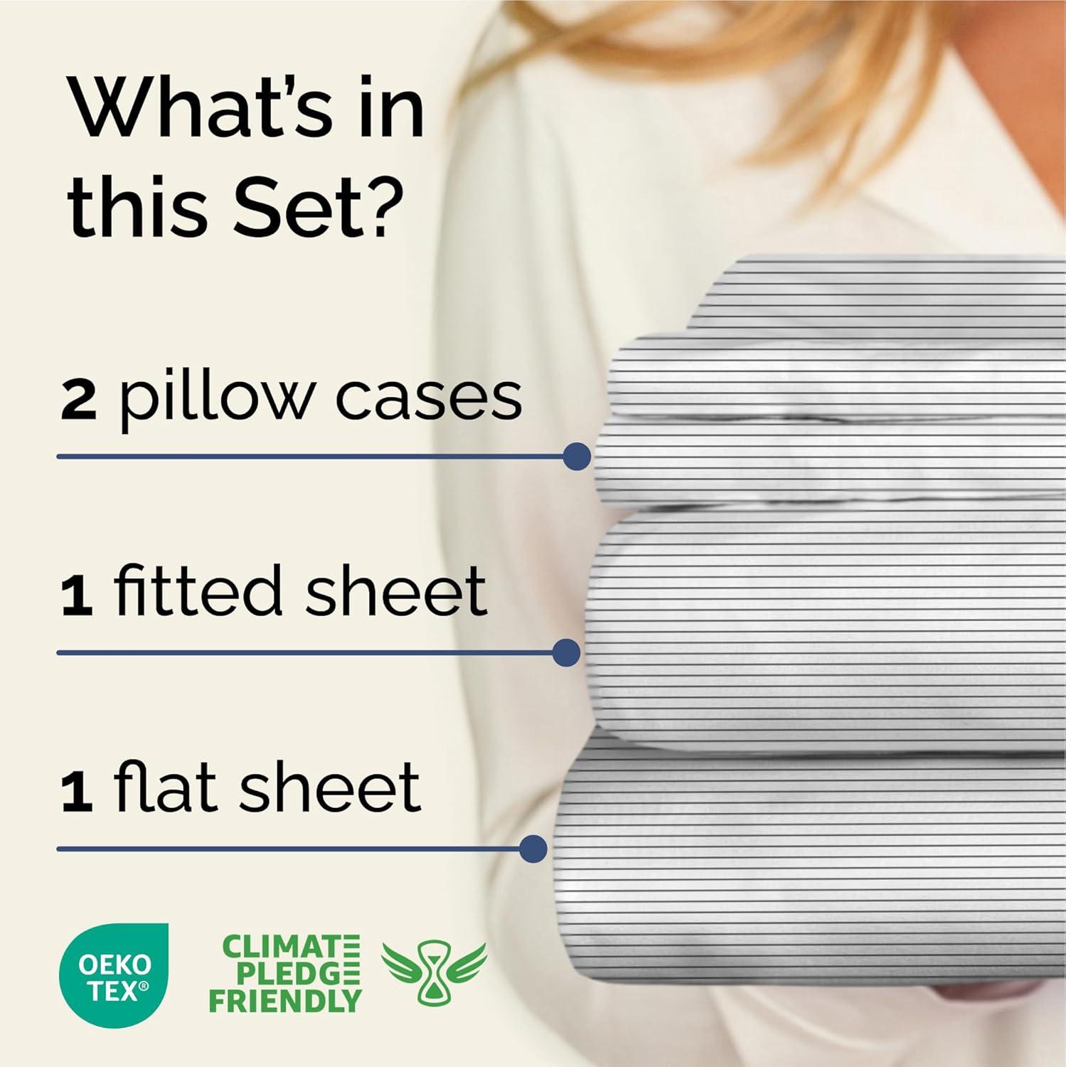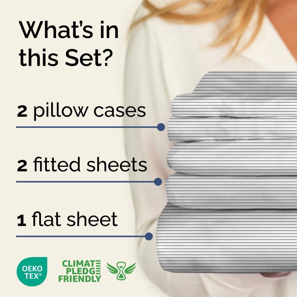 imageStriped Sheets  Grey Striped Sheets  1 Flat amp 1 Fitted amp 2 Pillowcases w Deep Pockets  Comfy Wrinkle amp Fade Free  UltraSoft Breathable amp Cooling  Luxury Pinstripe Bedding  Queen Size Bed Set32  Blue Stripe
