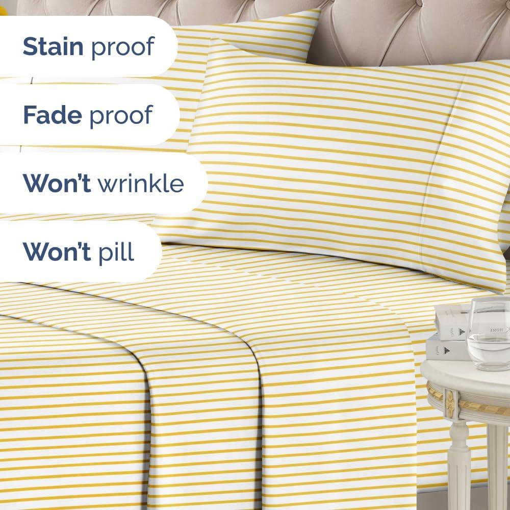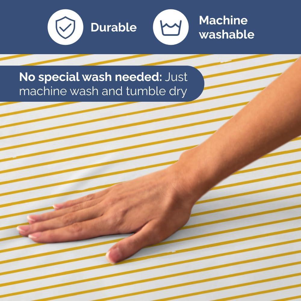 BOLD STRIPE DESIGNS: Elevate your Queen size bed with our eye-catching collection of striped designs, ranging from bold, modern lines to timeless pinstripes. Crafted with durability in mind, these sheets resist fading and maintain their vibrant appeal, perfect for adding a sleek, stylish touch to any bedroom.