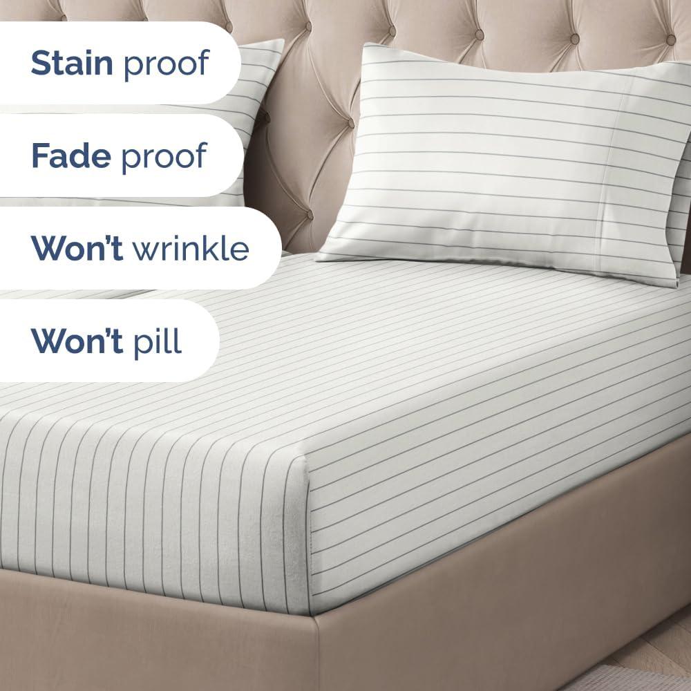 imageStriped Sheets  Grey Striped Sheets  1 Flat amp 1 Fitted amp 2 Pillowcases w Deep Pockets  Comfy Wrinkle amp Fade Free  UltraSoft Breathable amp Cooling  Luxury Pinstripe Bedding  Queen Size Bed Set37  Cream Stripe