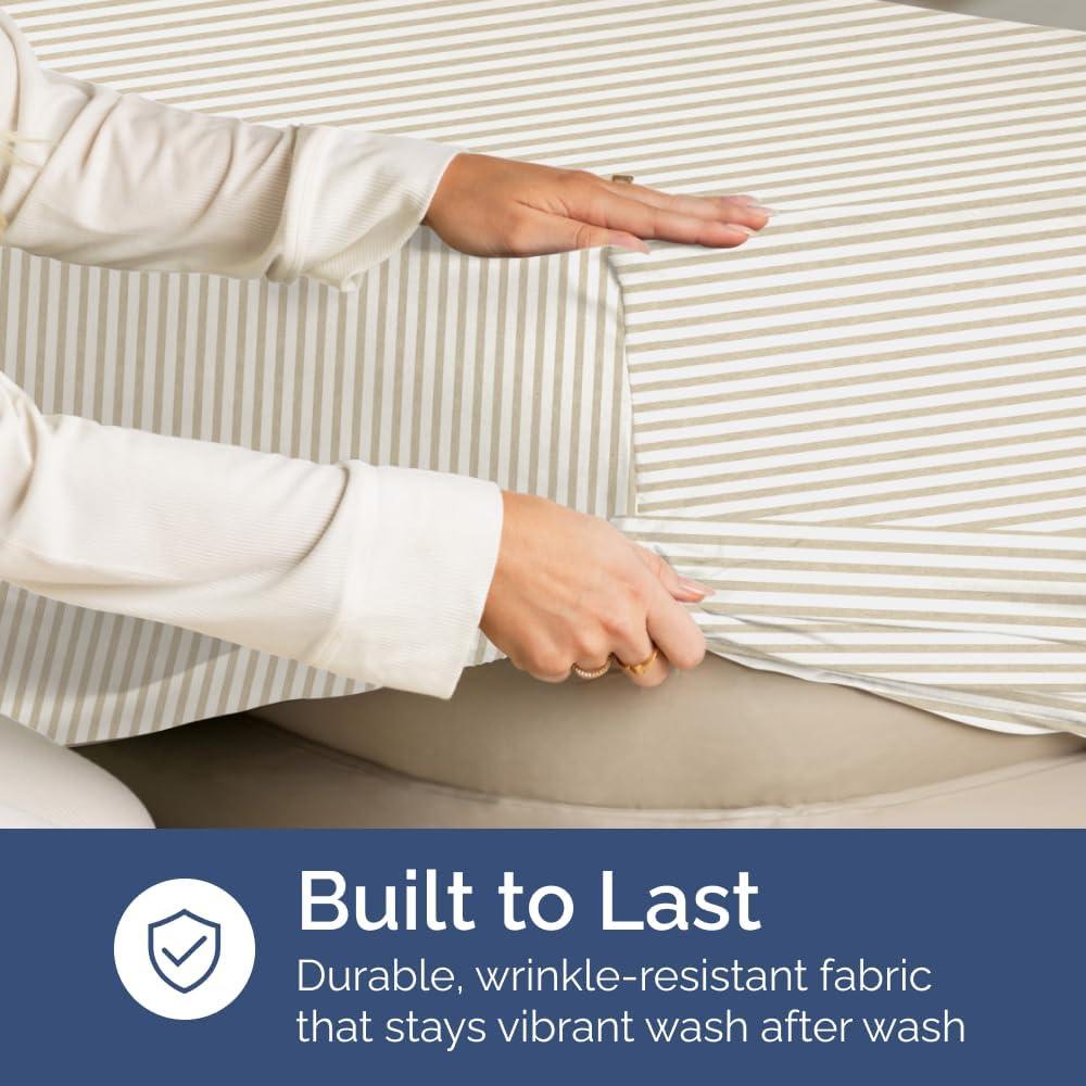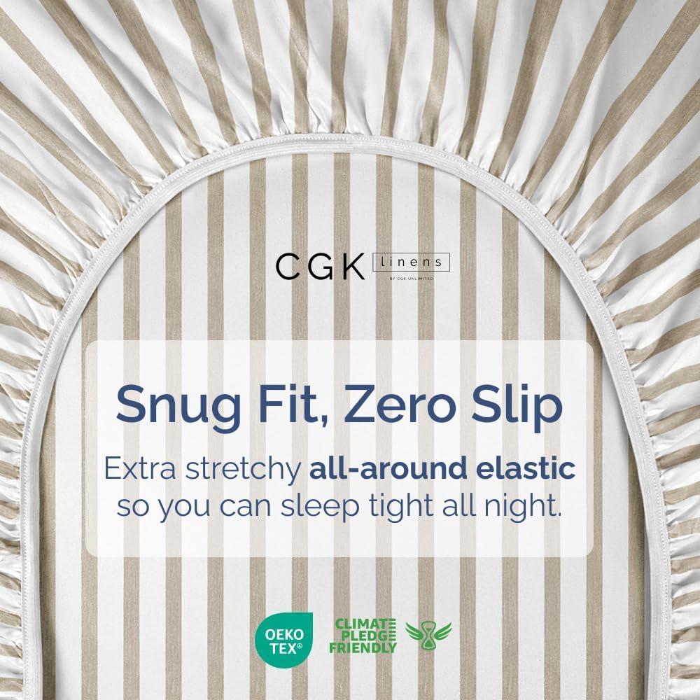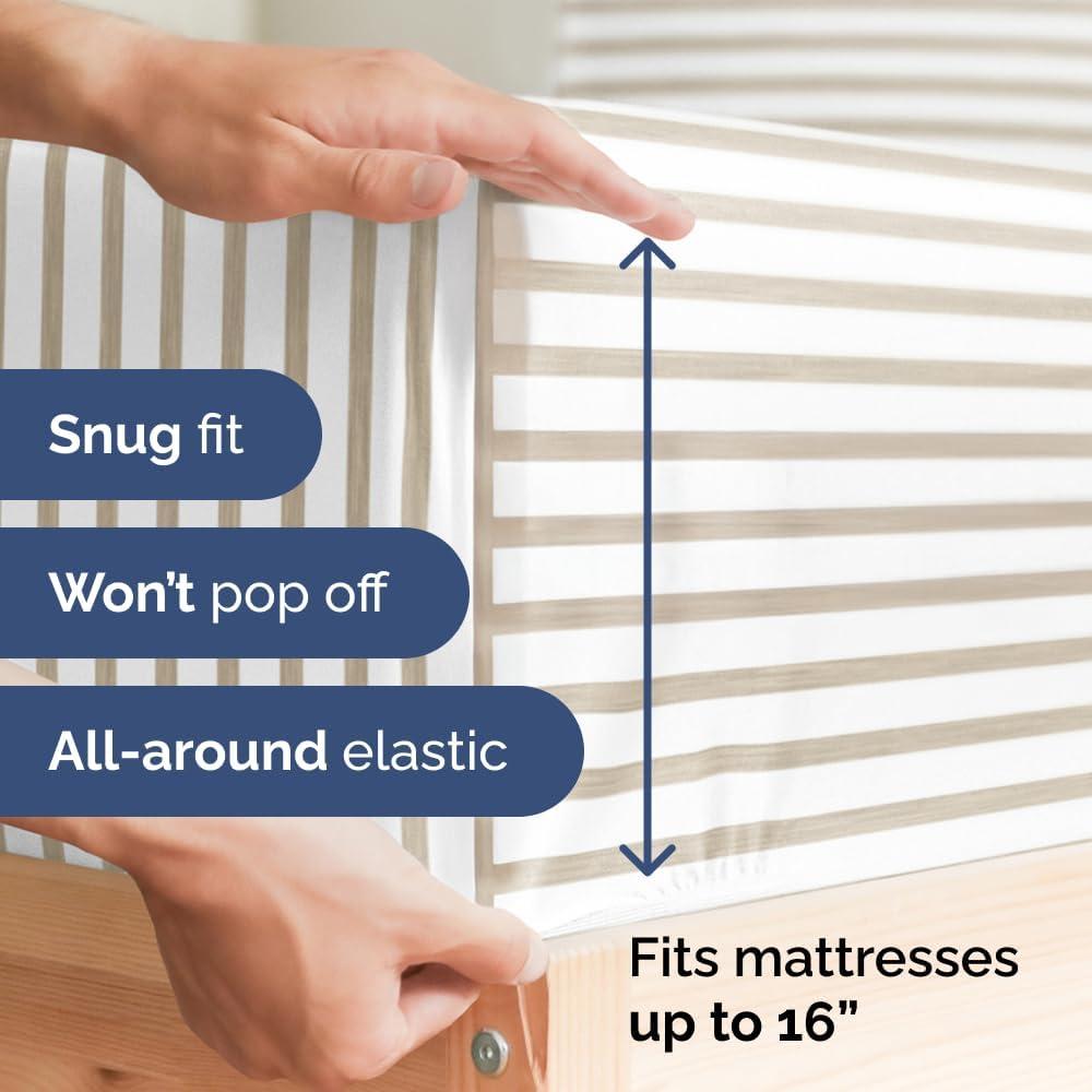imageTwin XL Fitted Bed Sheet  Bottom Single Fitted Sheet Only  Soft Hotel Luxury Bedding w 816 Inch Deep Pockets  Breathable amp Wrinkle Free  EasyCare Fade and Shrink Resistant  Beige Stripes 2