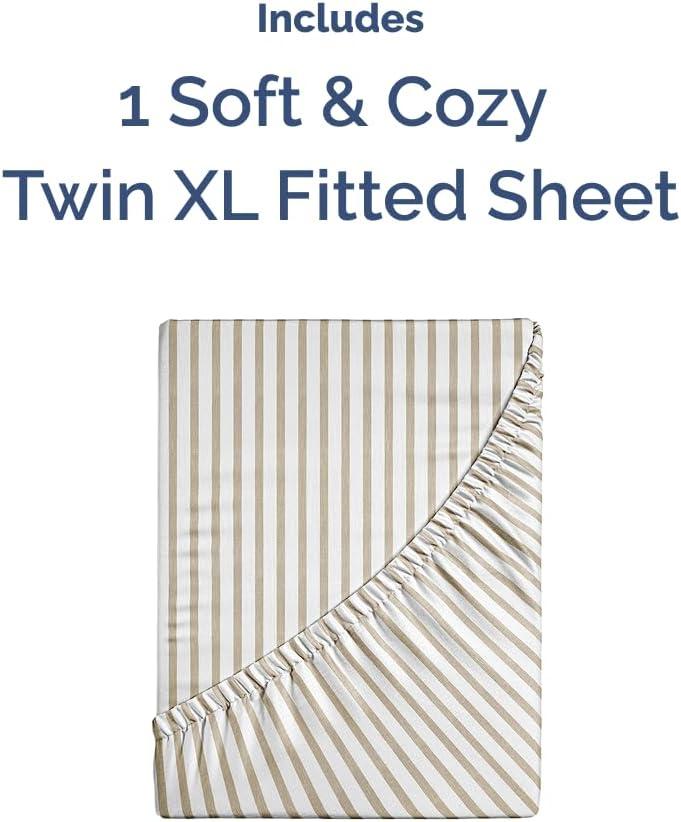 Twin XL Fitted Bed Sheet - Bottom Single Fitted Sheet Only - Soft Hotel Luxury Bedding w/ 8-16 Inch Deep Pockets - Breathable & Wrinkle Free - Easy-Care, Fade and Shrink Resistant - Beige Stripes 2