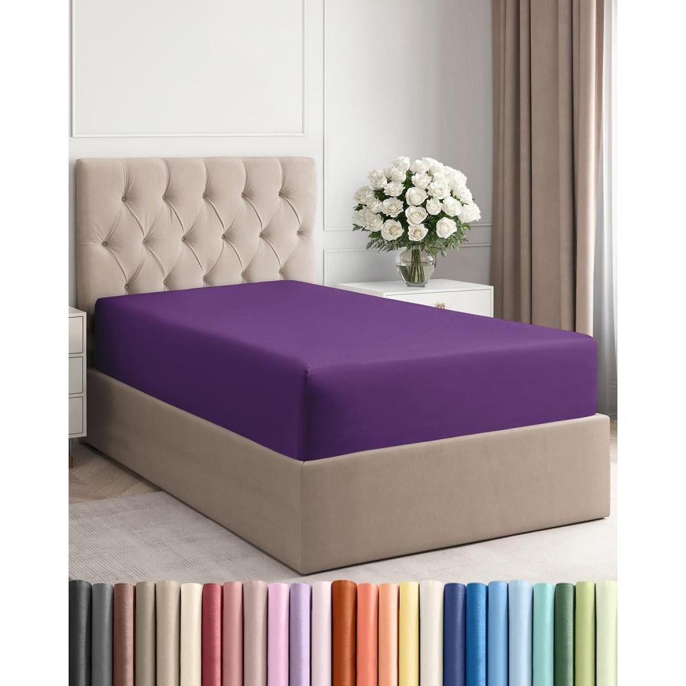 imageTwin XL Fitted Bed Sheet  Bottom Single Fitted Sheet Only  UltraSoft Hotel Luxury Bedding w 816 Inch Deep Pockets  Breathable Cooling amp Wrinkle Free  EasyFit Fade amp Shrink Resistant  Purple