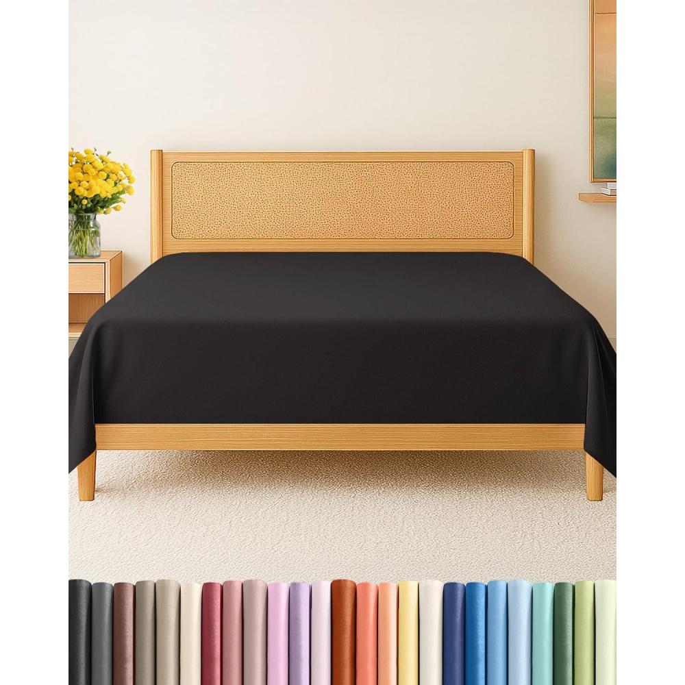 imageTwin XL Size Flat Sheet  Hotel Quality Top Flat Bed Sheet Only  UltraSoft Breathable amp Cooling  Fade amp Wrinkle Free  EasyCare Stain amp Shrink Resistant Bedding  EasyFit and OekoTex  Cream08  Black